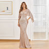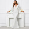 Fleepmart Women White Sequin Dress Long Prom Dress V Neck Evening Dress Elegant Party Maxi Dress