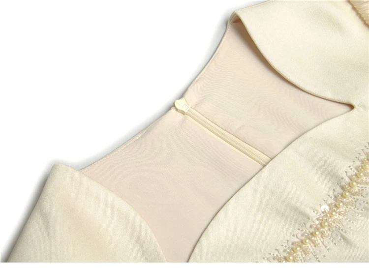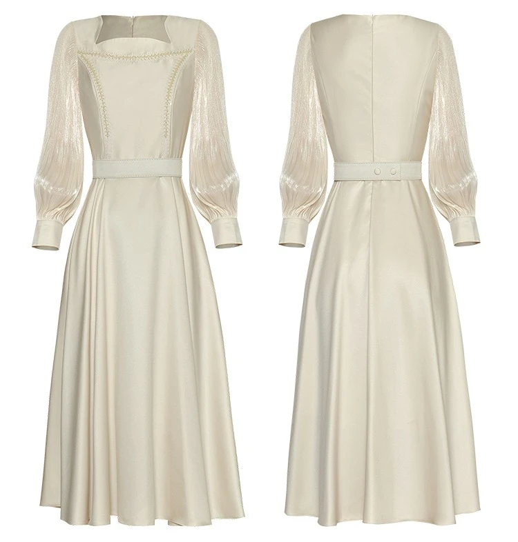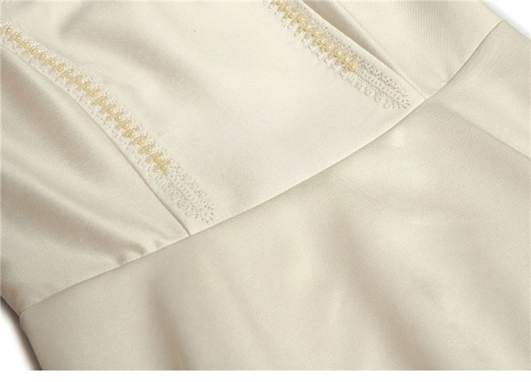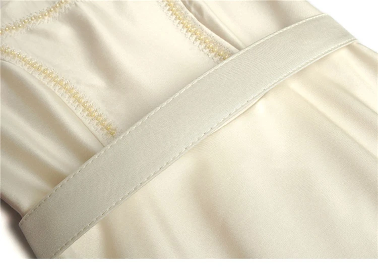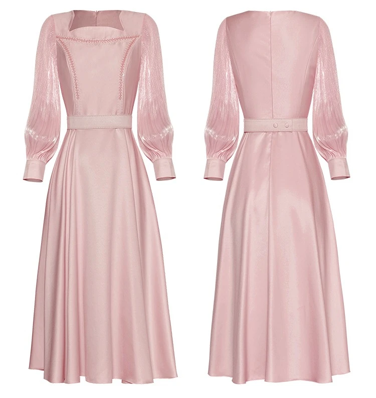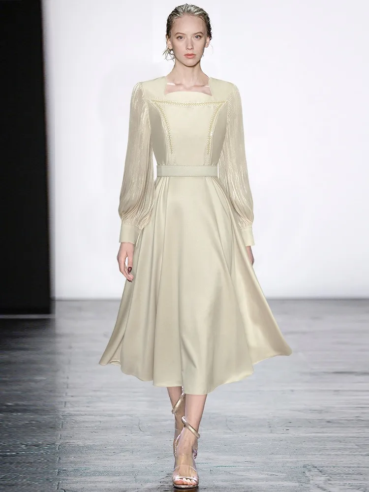 Fleepmart Women’s Catwalk Luxury Spring High Quality Fashion Party Beige Pink Beading Gorgeous Sweet Pretty Chic Lace Up Casual Midi Dress