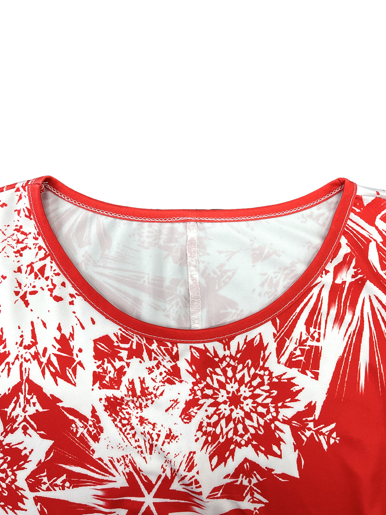 Fleepmart Women’S Christmas Snowflake Print Long Sleeve Dress – Red & White Winter Party Outfit, Formal Holiday Events