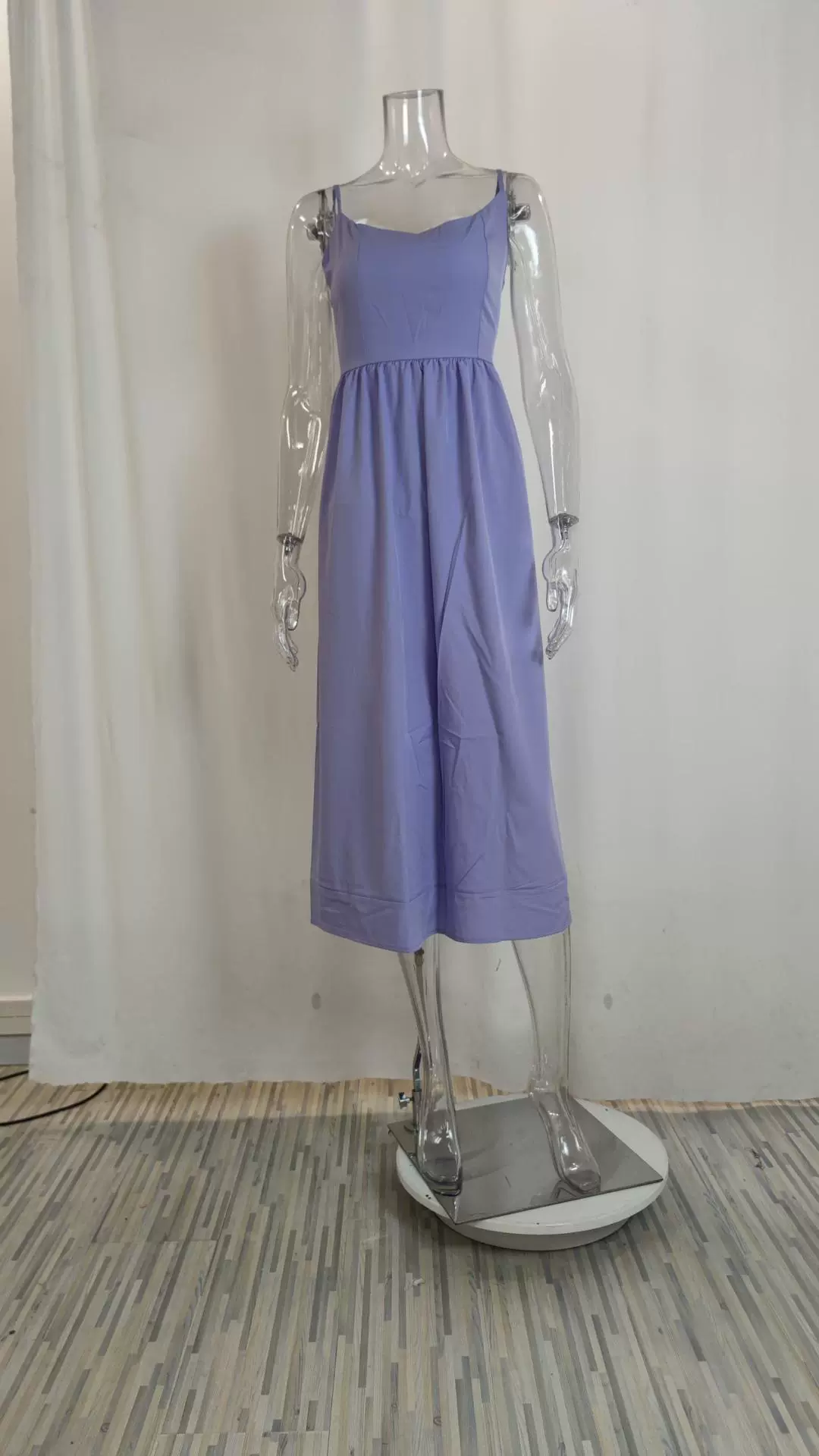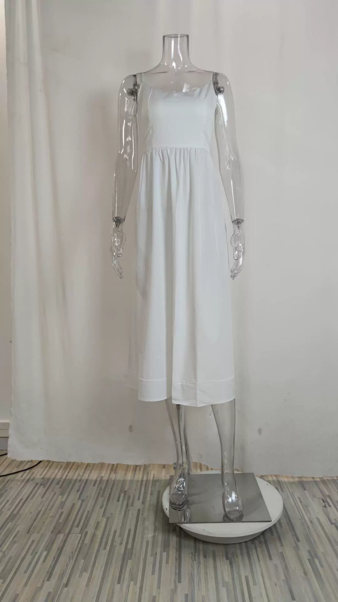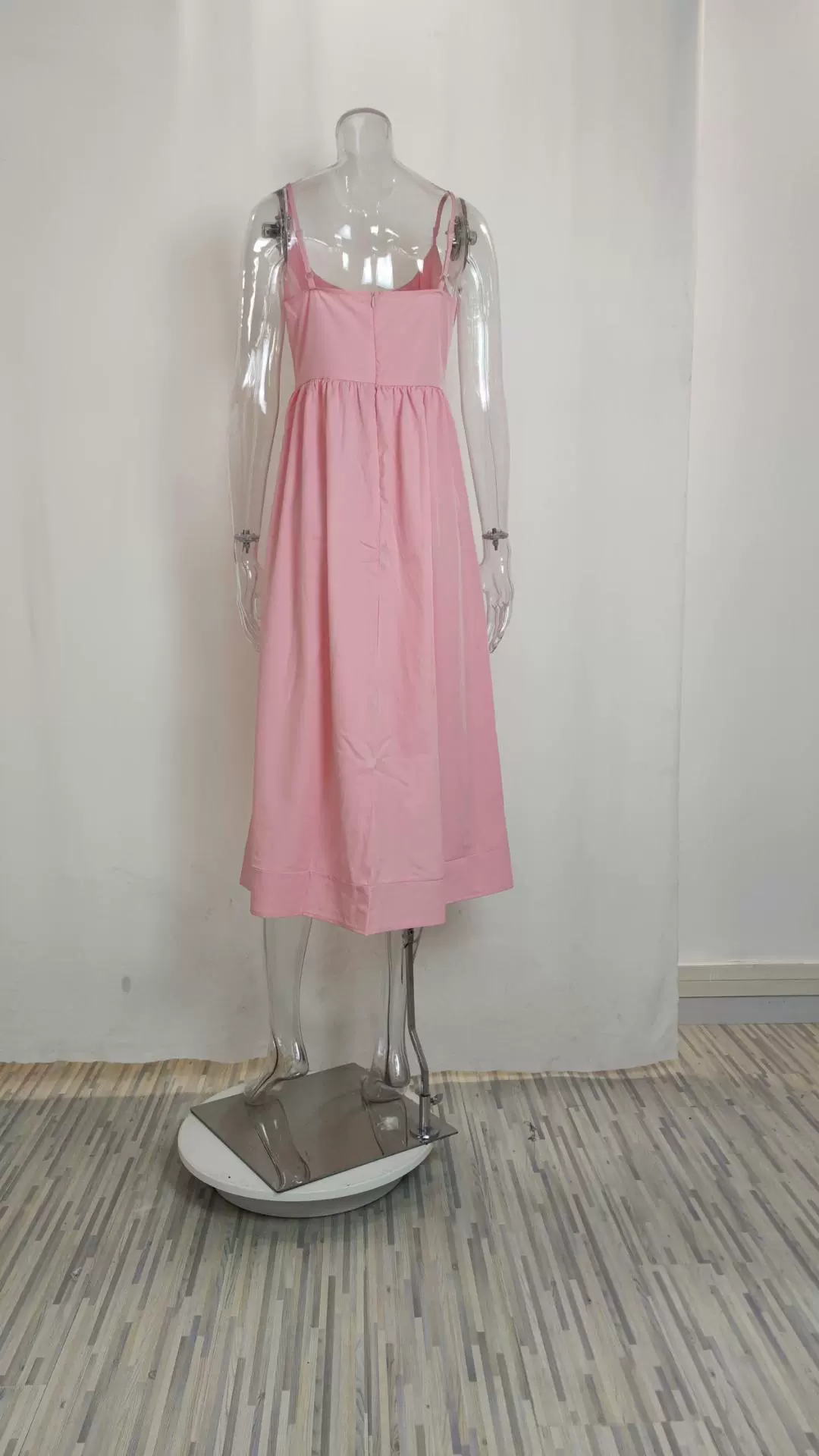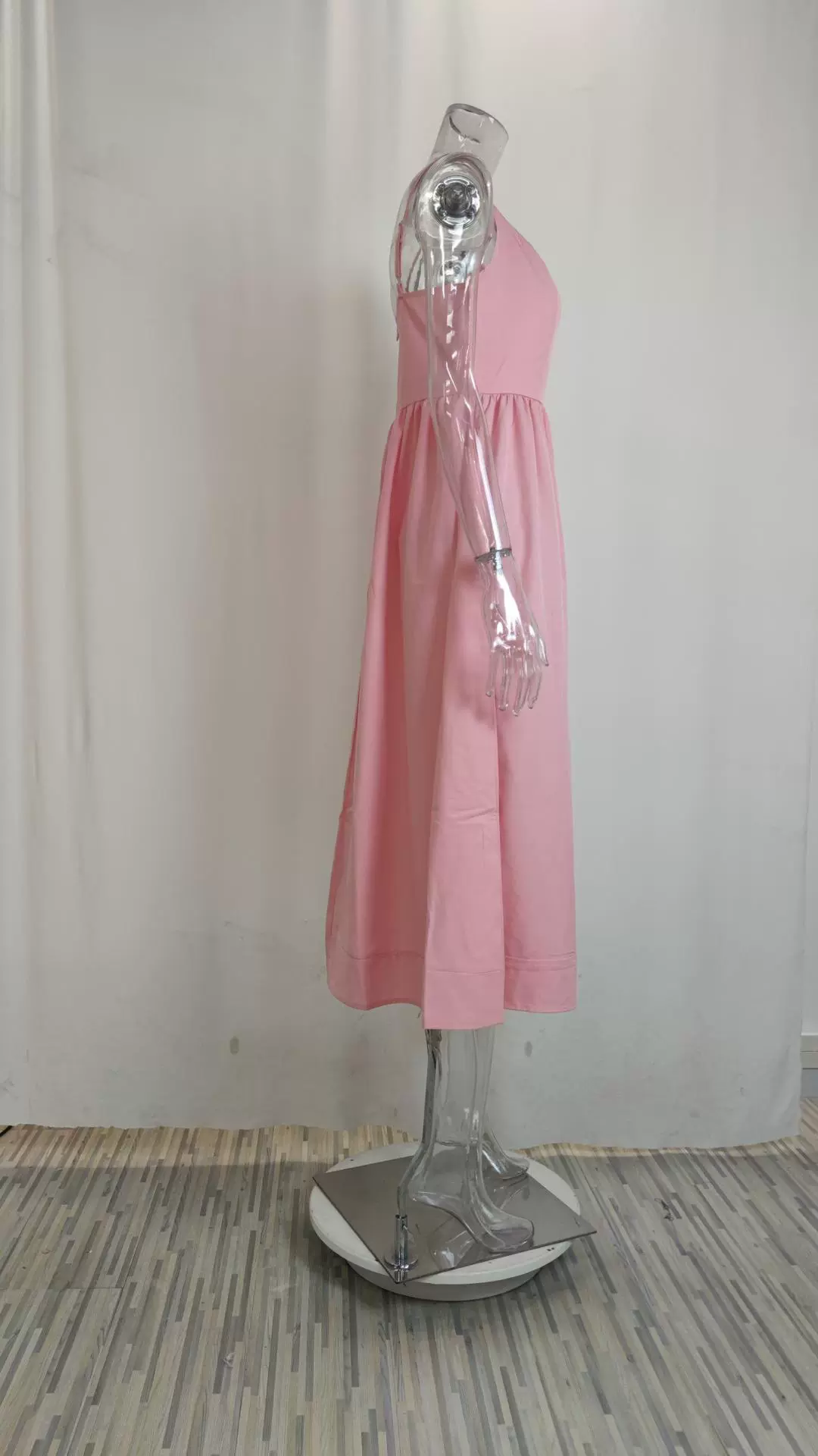Fleepmart Women’s Clothing Summer New Solid Colour Sexy U-neck Waist Pleats Halter Long Dress