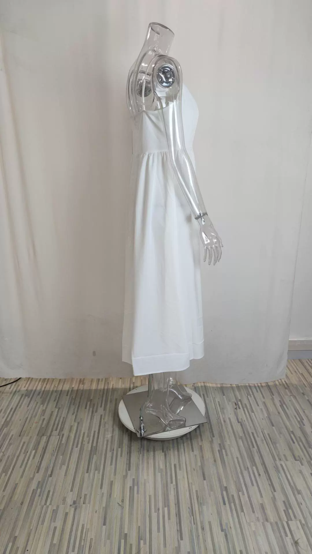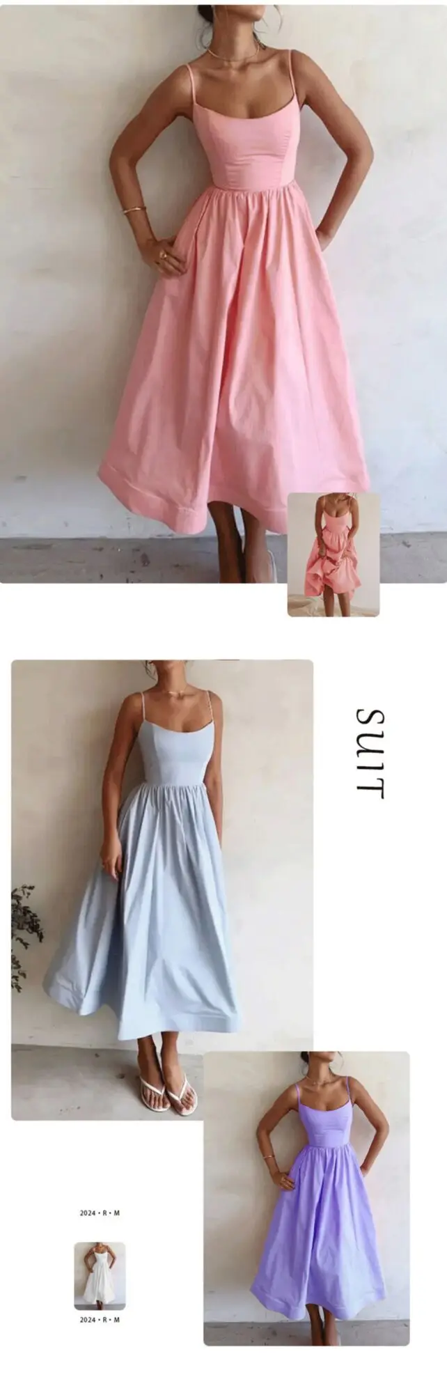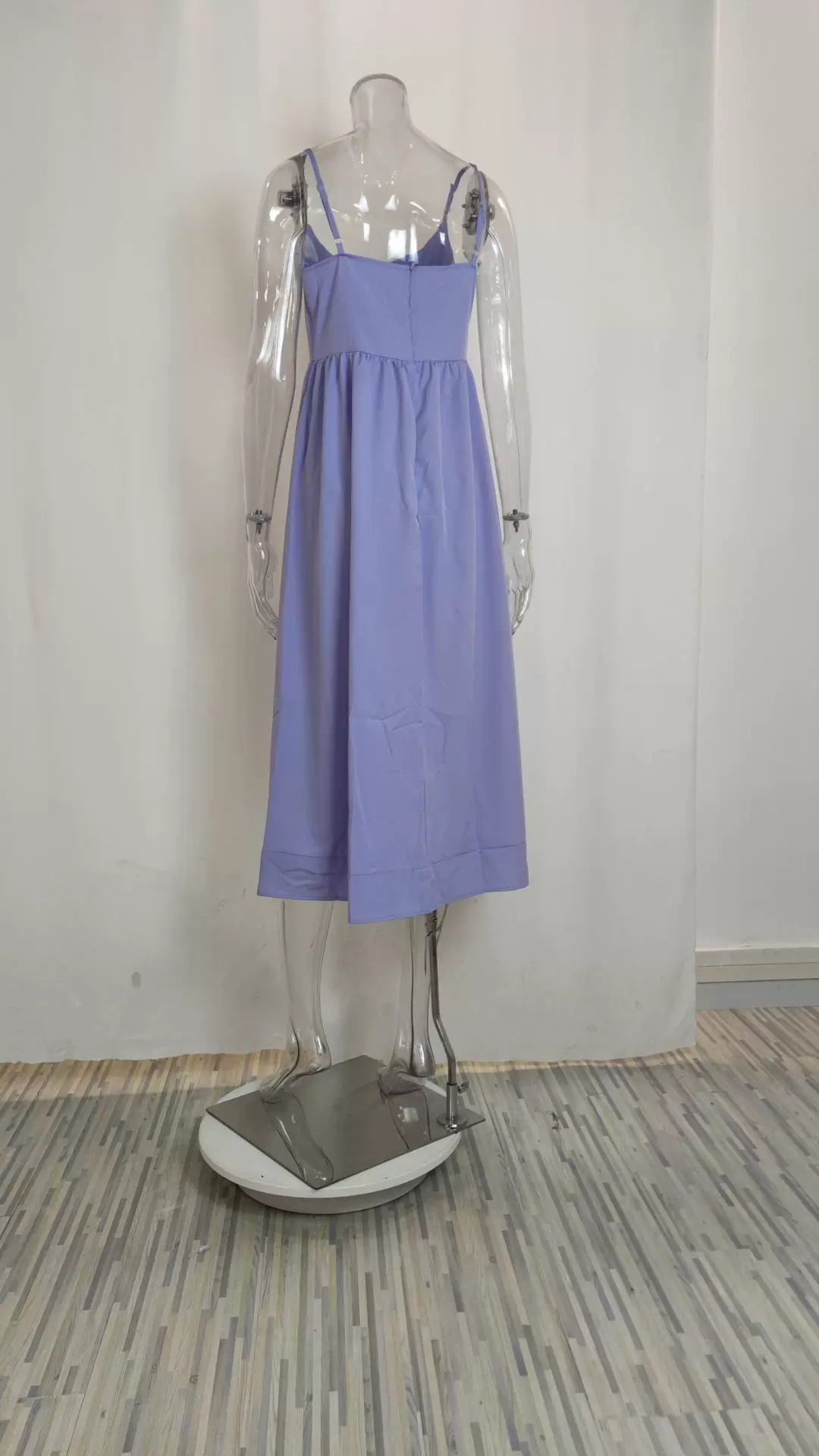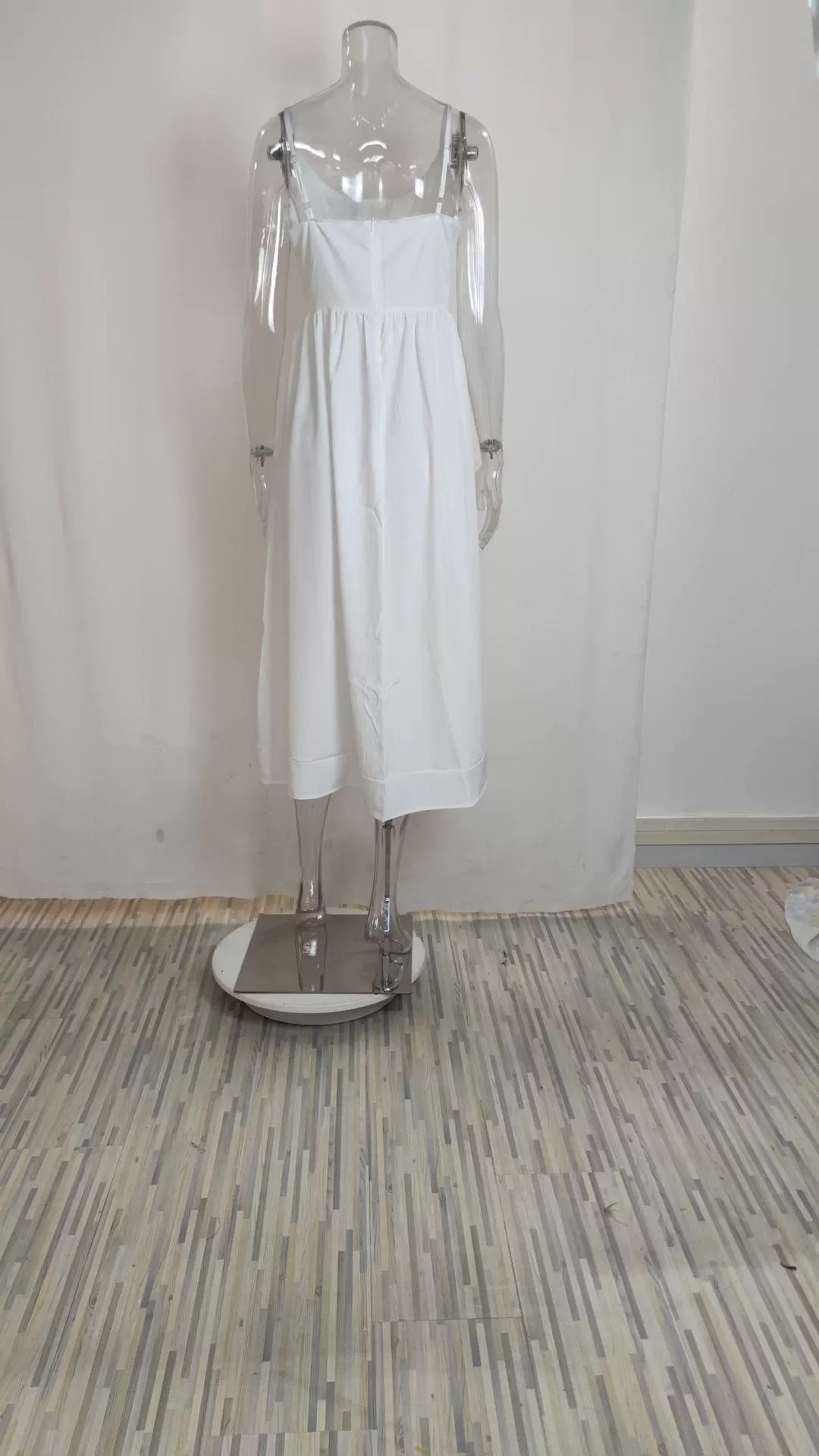 Fleepmart Women’s Clothing Summer New Solid Colour Sexy U-neck Waist Pleats Halter Long Dress