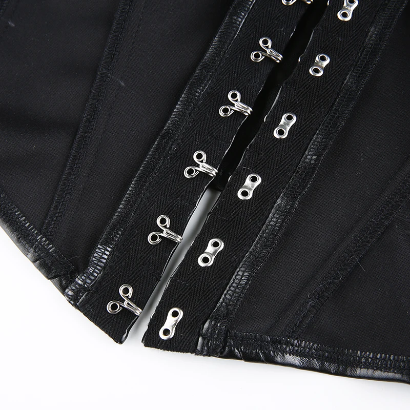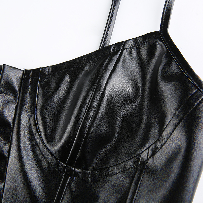 Fleepmart Women’s Corset Sexy Black PU Leather Bustier Crop Top Fashion Lady Sleeveless Strap Camis Clubwear Summer Low-cut Slim Camis