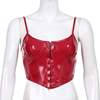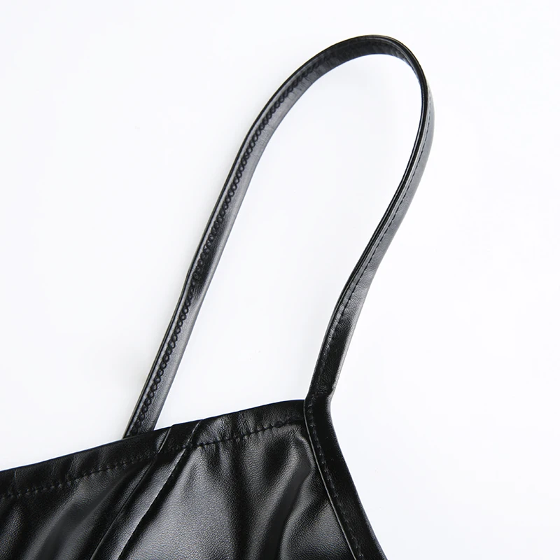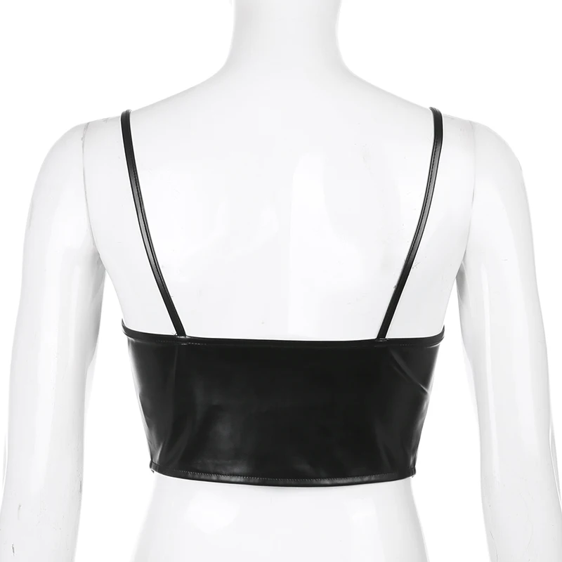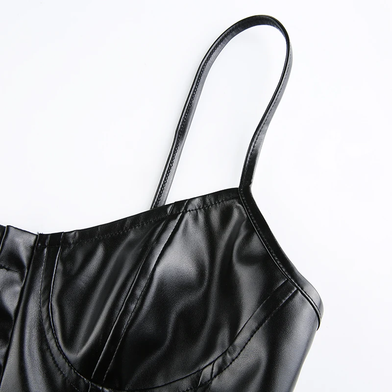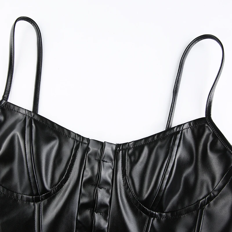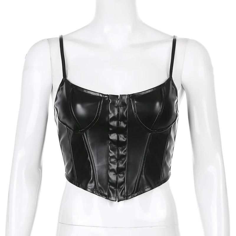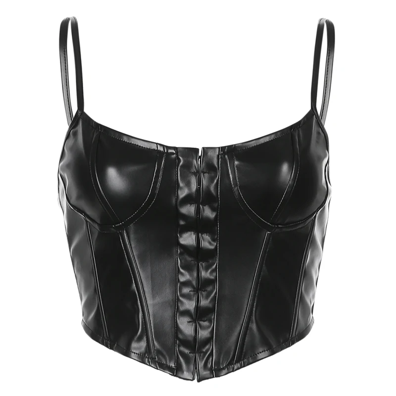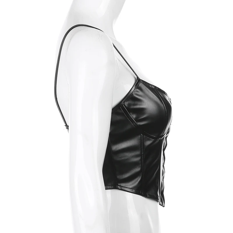 Fleepmart Women’s Corset Sexy Black PU Leather Bustier Crop Top Fashion Lady Sleeveless Strap Camis Clubwear Summer Low-cut Slim Camis
