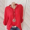 Fleepmart Women’s cotton linen shirt solid color V-neck pocket temperament commuter women’s long-sleeved top