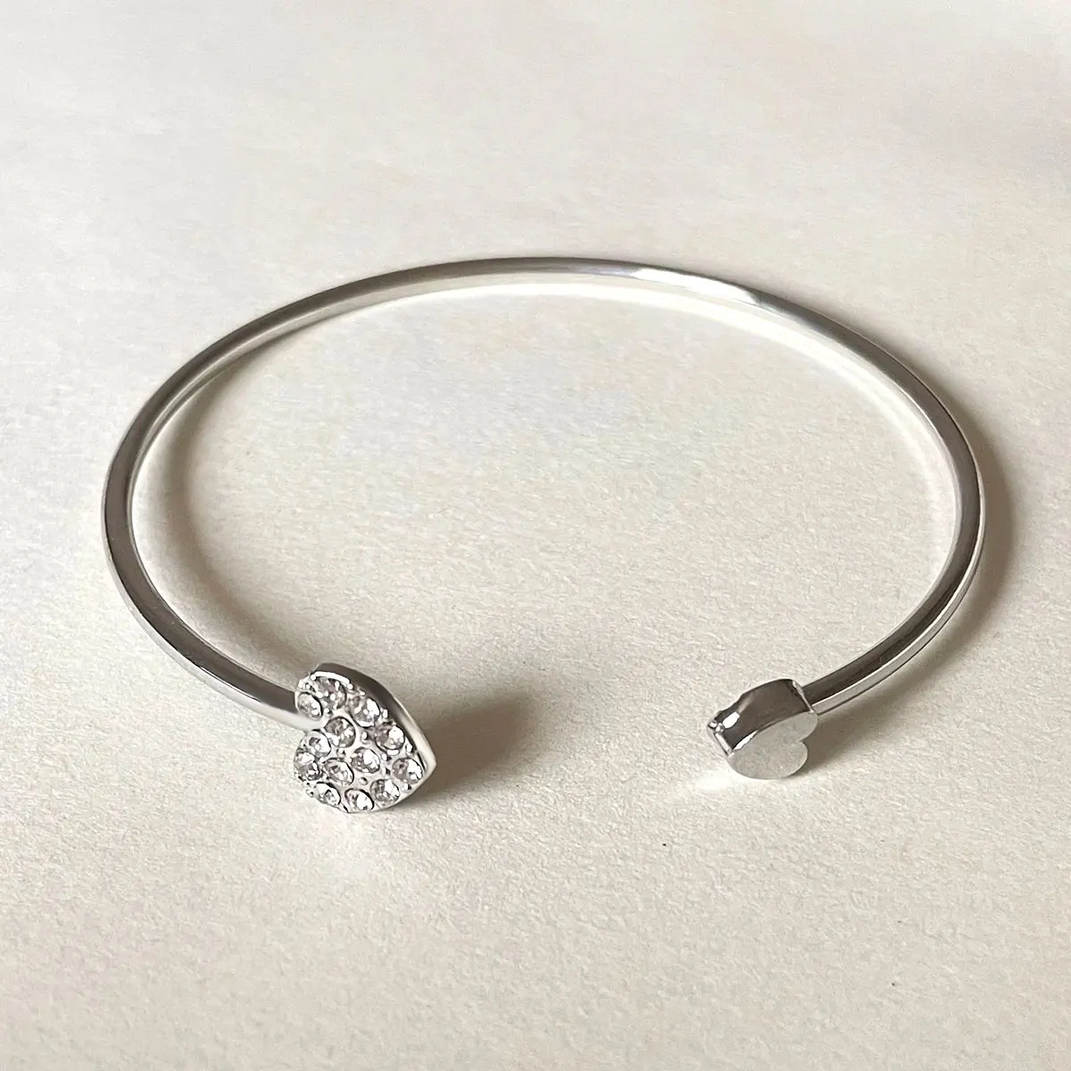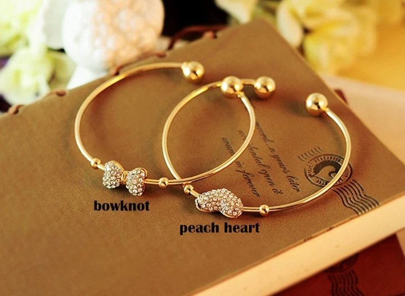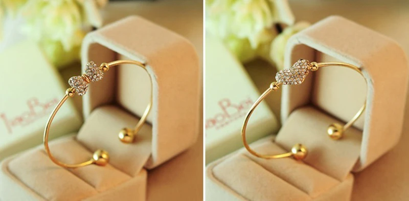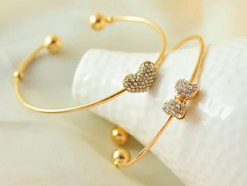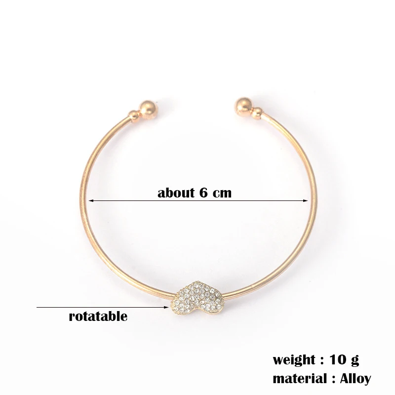 Fleepmart Women’s Cute Elegant Heart and Bowknot Cuff Bracelet Bangles Crystal Charming Accessory Rotatable Fine Wrist Jewelry