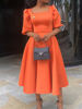 Fleepmart Women's Dress Elegant Short Sleeve Solid Stitching High Waist Big Hem Mid-length A Line Dresses for Women Yellow Blue