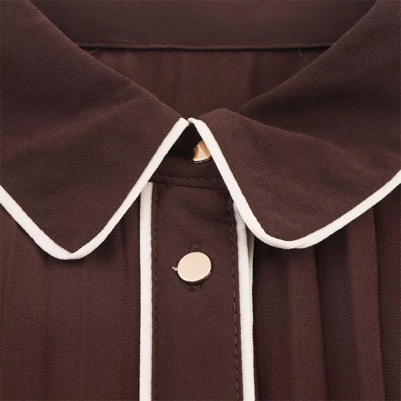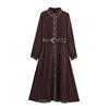Fleepmart Women’s Dresses New Fall 2025 Russet Long Sleeves with Belt Pleated Embellished Midi Dress Maxi Dress Casual Fashion Personality