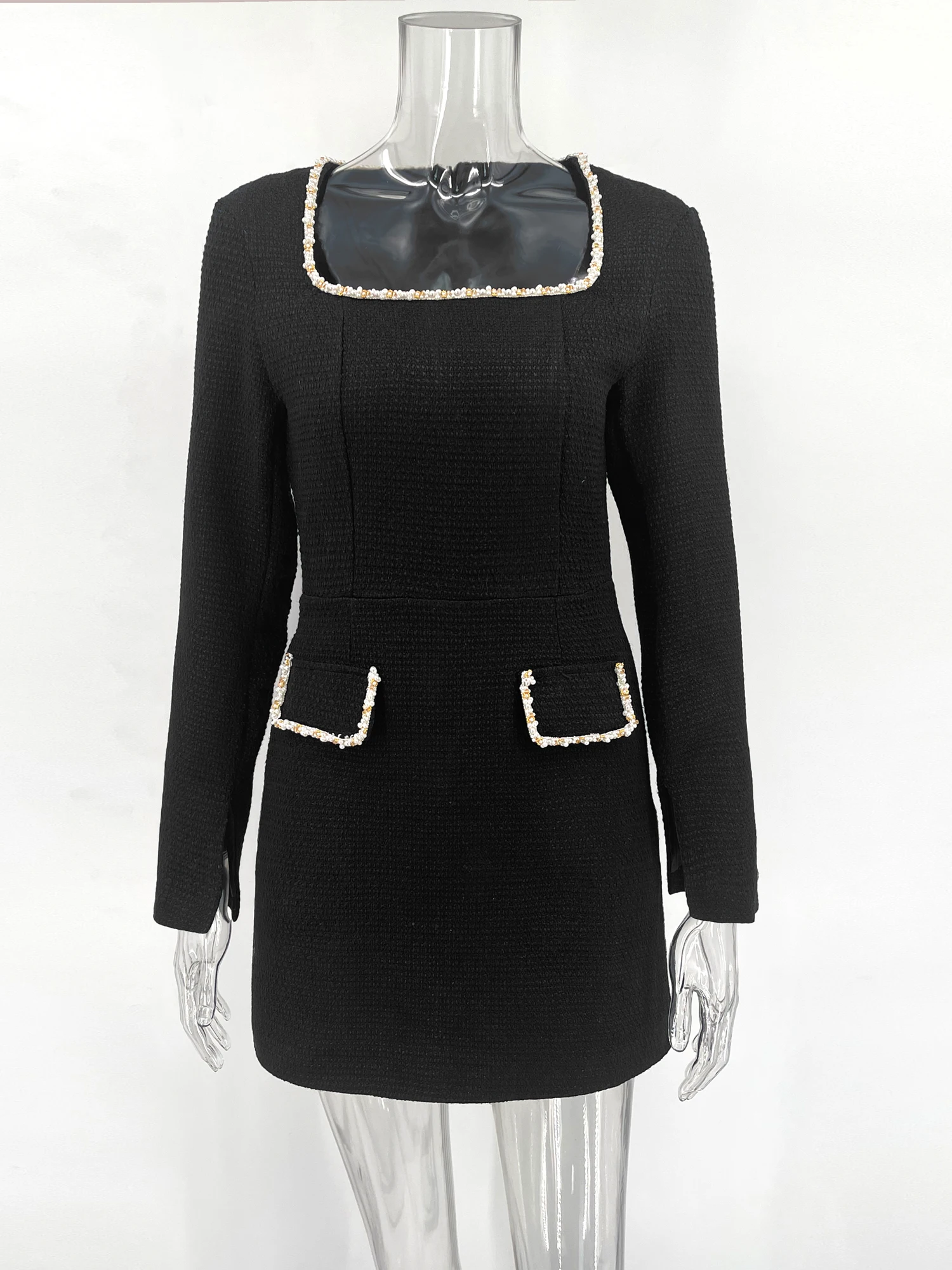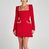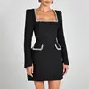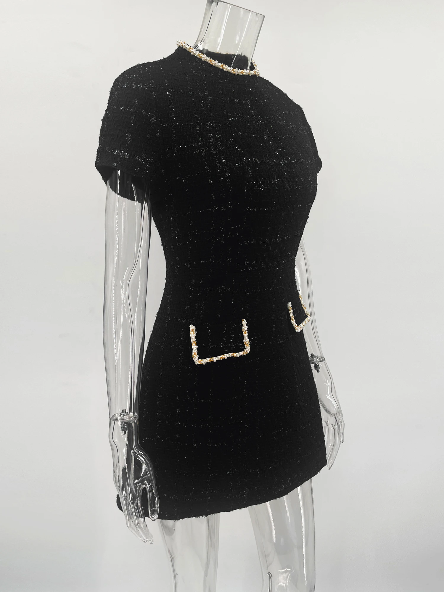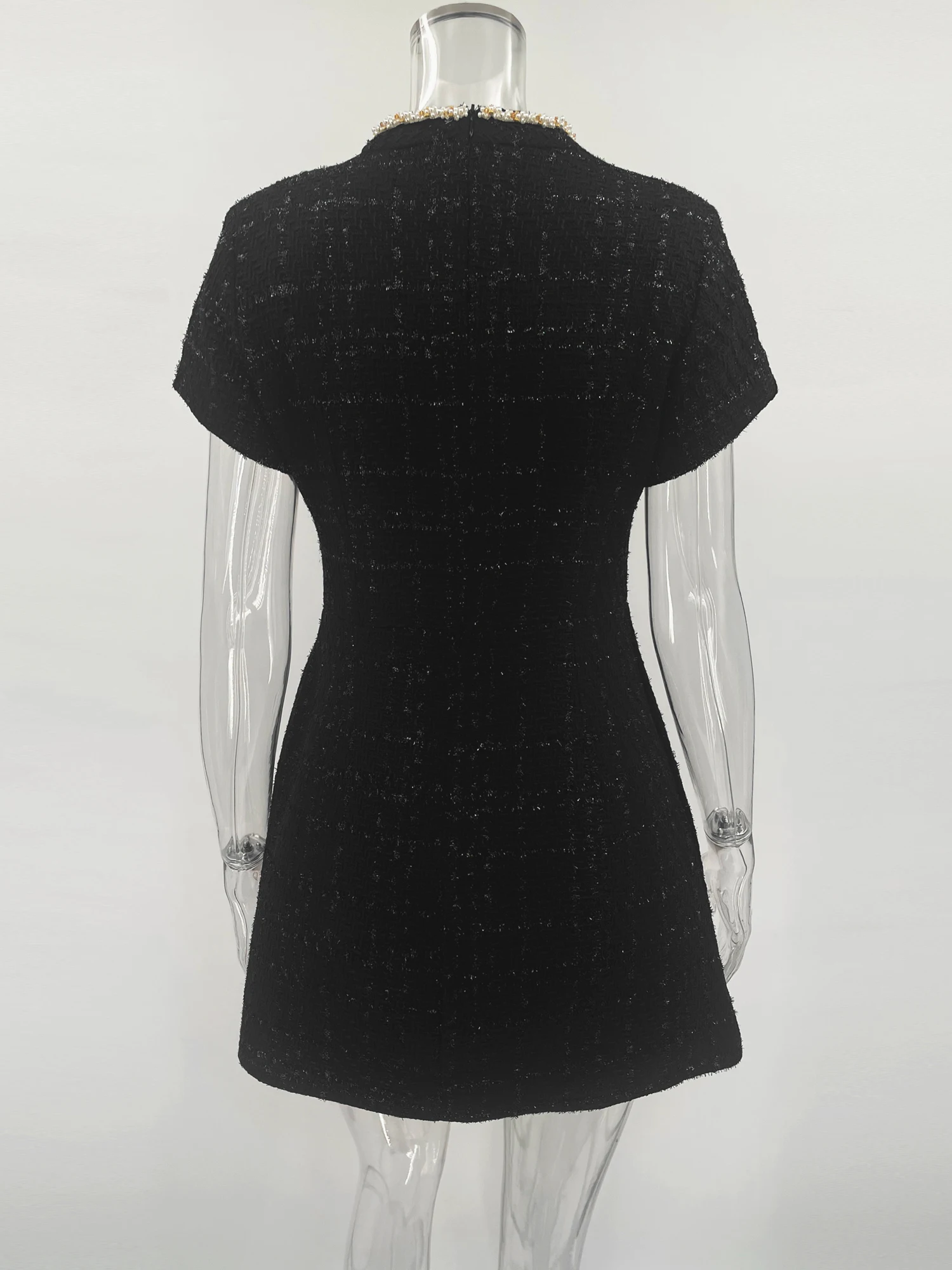 Fleepmart Women’s Elegant A-Line Solid Slim Fit Y2k Short Sleeve Retro O-Neck Luxury Evening Dress