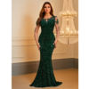 Fleepmart Women’s Elegant Lace Sequined Evening Dress Hollow Out Long Prom Party Gown