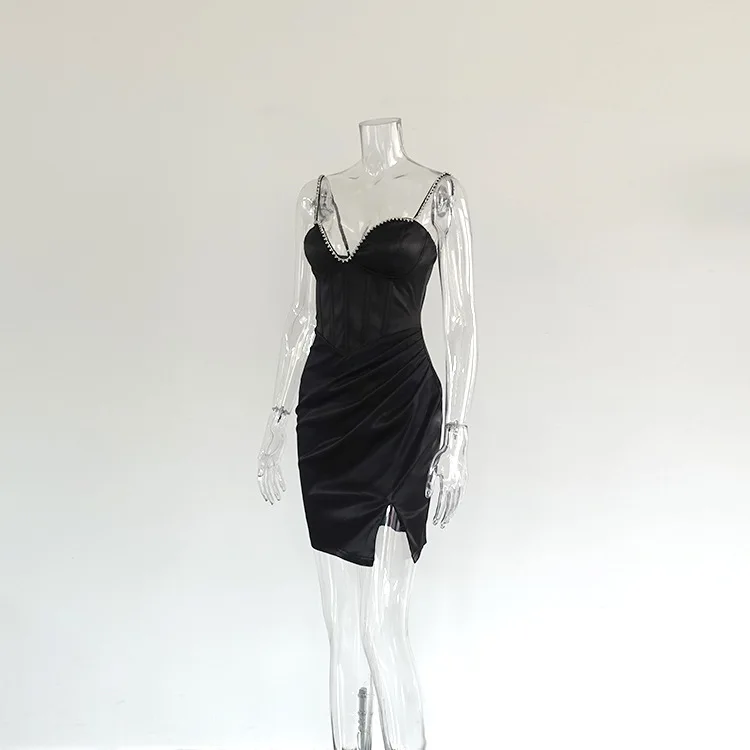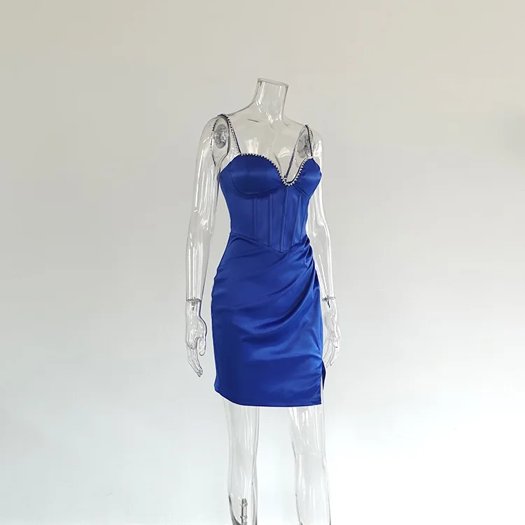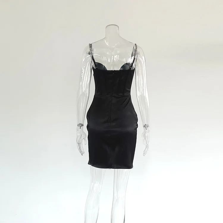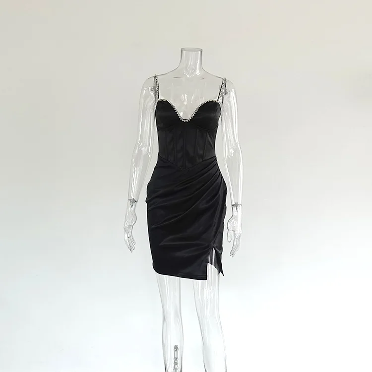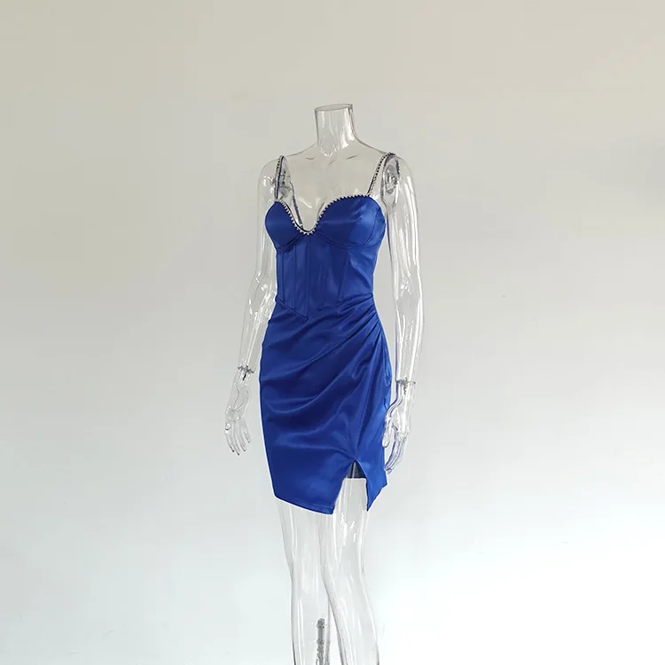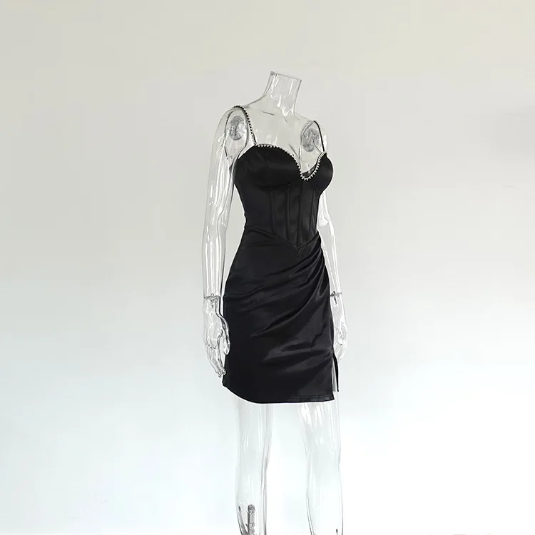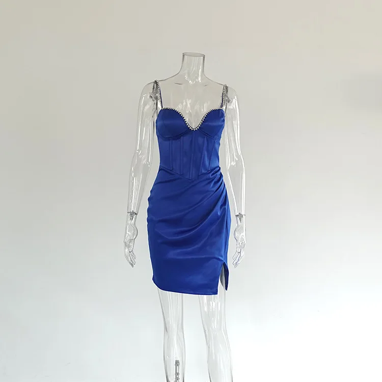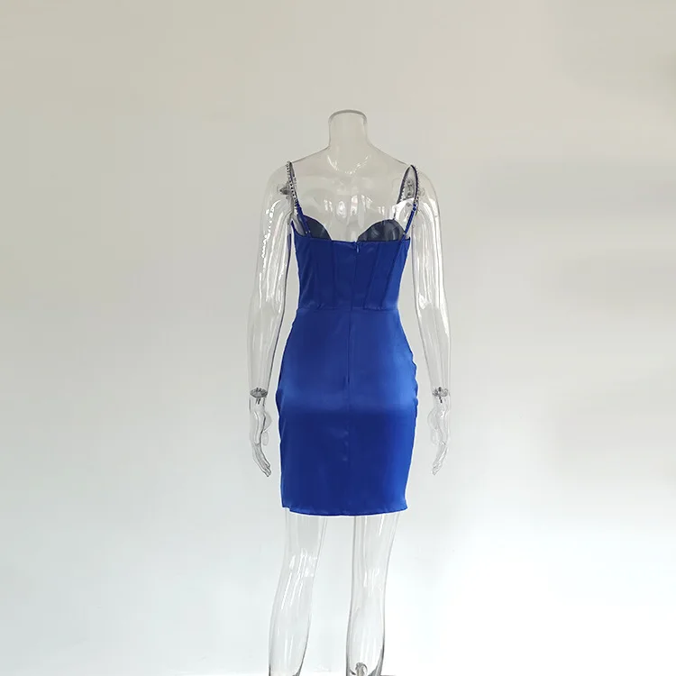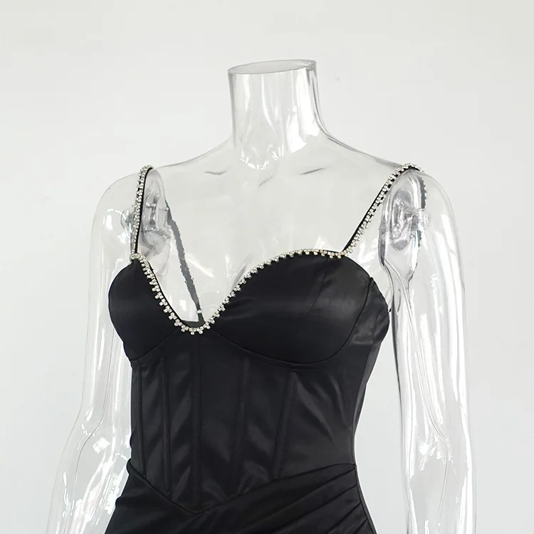 Fleepmart Women’s Fashion Sexy Sleeveless Diamond Mini Corset Dress Elegant 2023 Summer Side Split Evening Club Party Dress