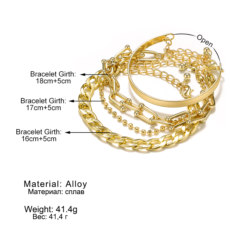 Fleepmart Women’s Heavy Metal Bracelet Set Fashion Punk Geometric Chain Thick Chain Metal Bangle Bracelet Trendy Charm Jewelry Gift