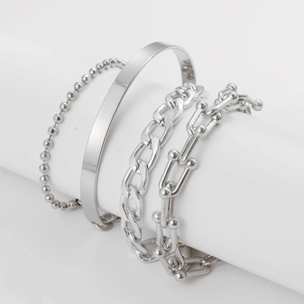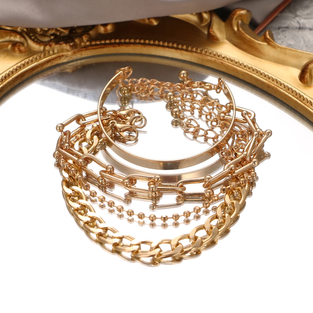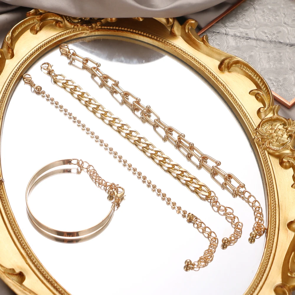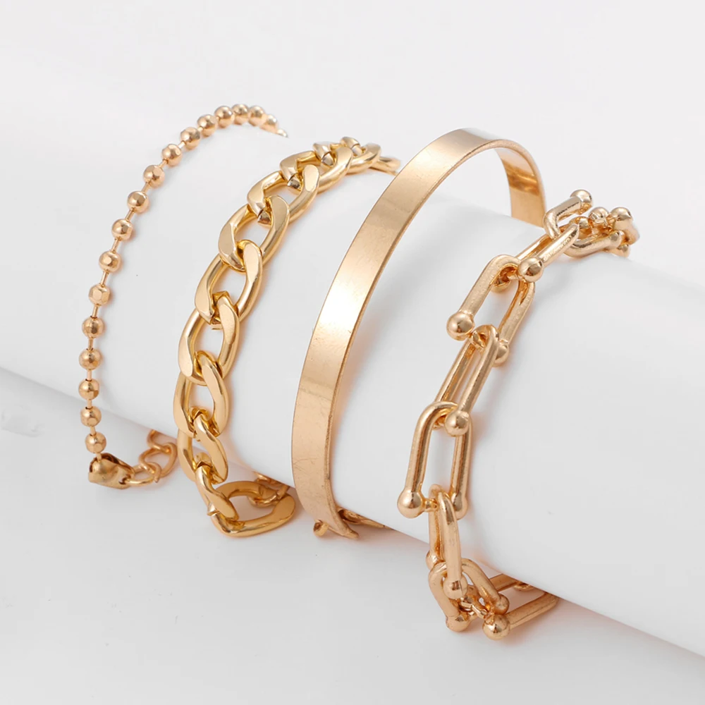 Fleepmart Women’s Heavy Metal Bracelet Set Fashion Punk Geometric Chain Thick Chain Metal Bangle Bracelet Trendy Charm Jewelry Gift