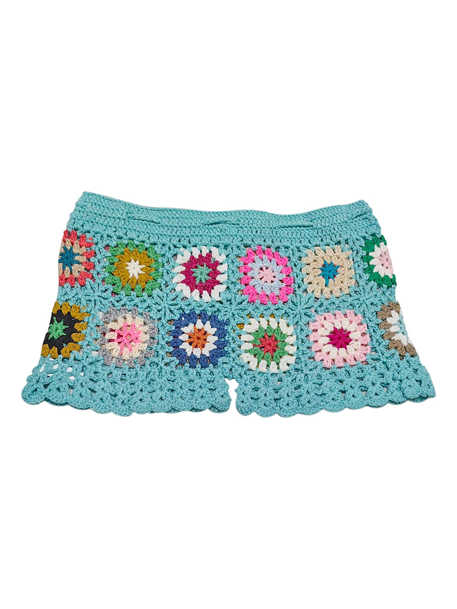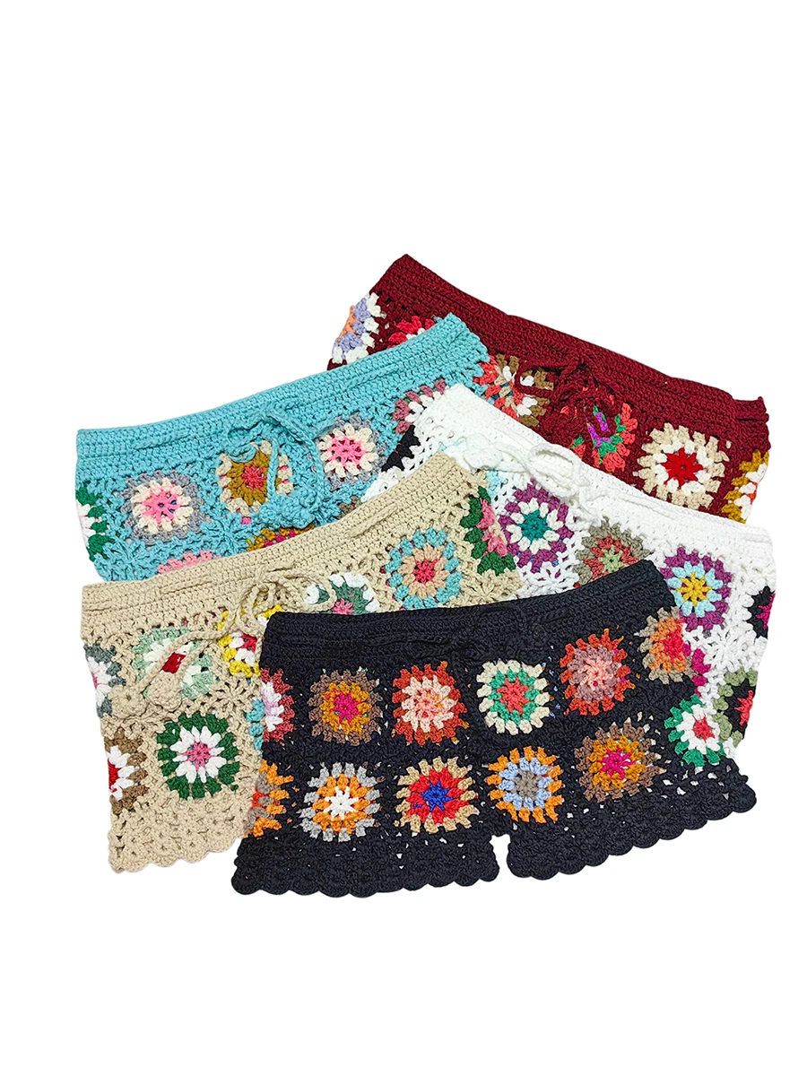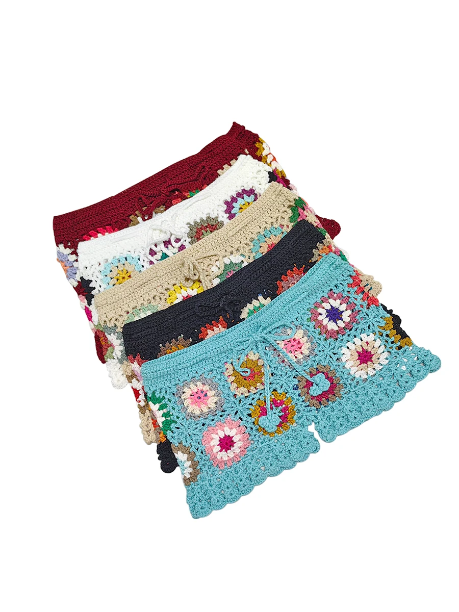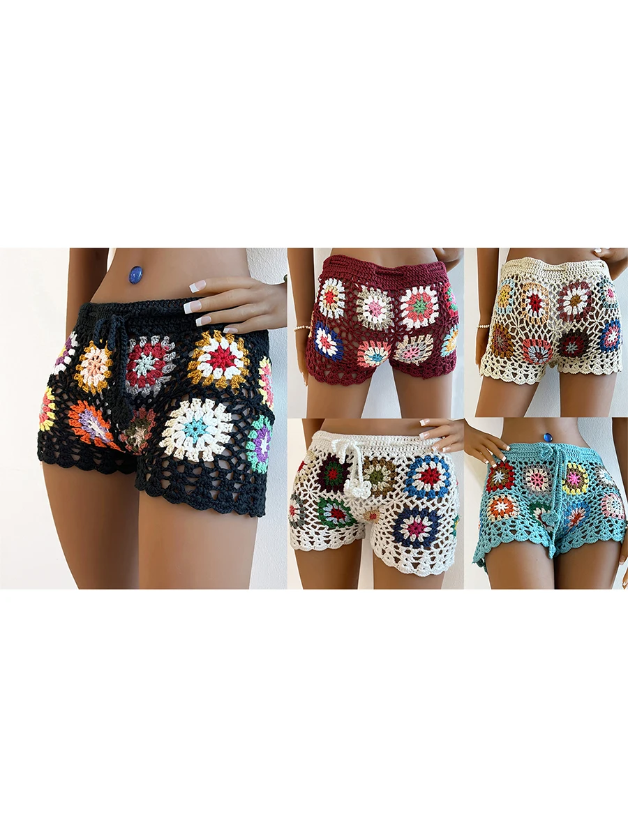 Fleepmart Women’s Knit Crochet Shorts Beach Summer Casual Hollow Out Elastic Waist Drawstring Short Pants Female Lounge Sleep Bottoms Y2K