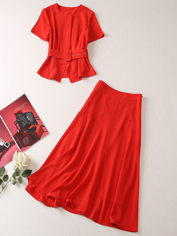 Fleepmart Women’S New High Quality Summer Fashion Belt Red Slim Vintage Celebrity Party Sexy Elegant Workplace Office Chic Women’S Sets