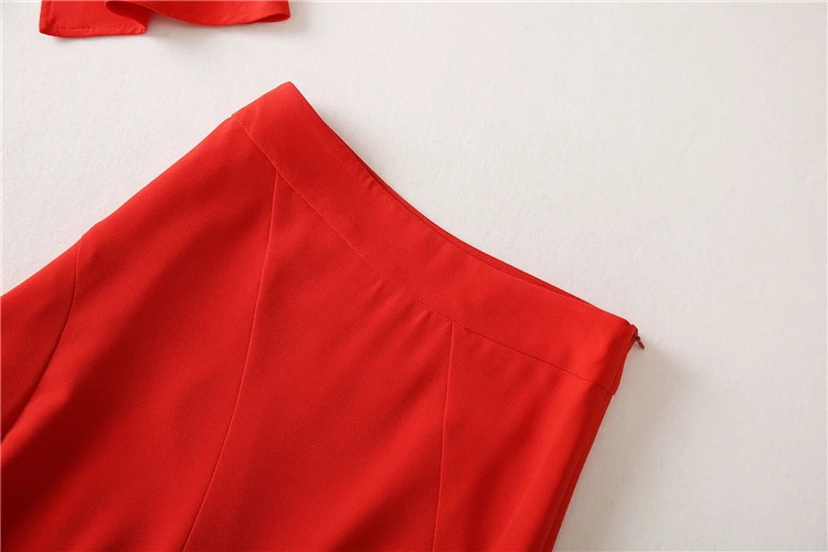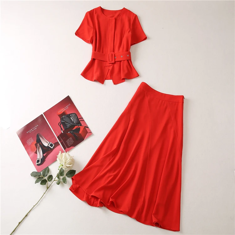 Fleepmart Women’S New High Quality Summer Fashion Belt Red Slim Vintage Celebrity Party Sexy Elegant Workplace Office Chic Women’S Sets
