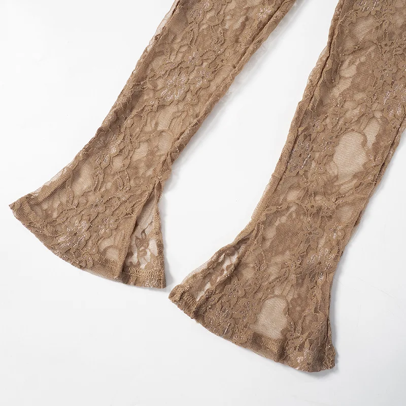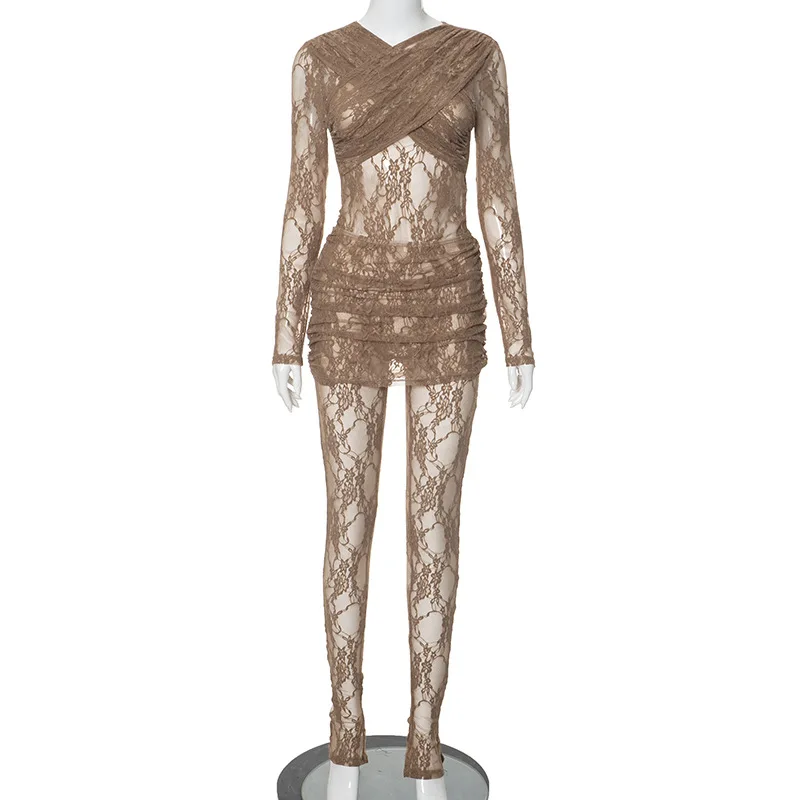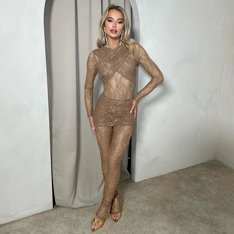 Fleepmart Women’s New Lace See-through Jumpsuit Pants + Skirt Two-piece Set Elegant Sexy Party Club