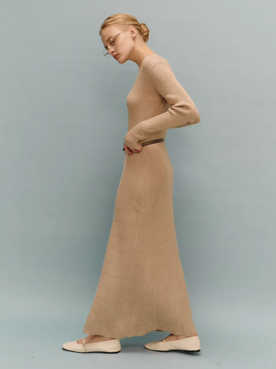 Fleepmart Women’s New Solid Color Long Sleeve V-neck Slim Bodycon Knitted Maxi Dress Trendy Elegant Fashion Dresses