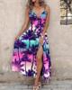 Fleepmart Women’s Ombre Leaf Eyelet Strap Maxi Dress Elegant Hawaiian Vacation Sleeveless Summer
