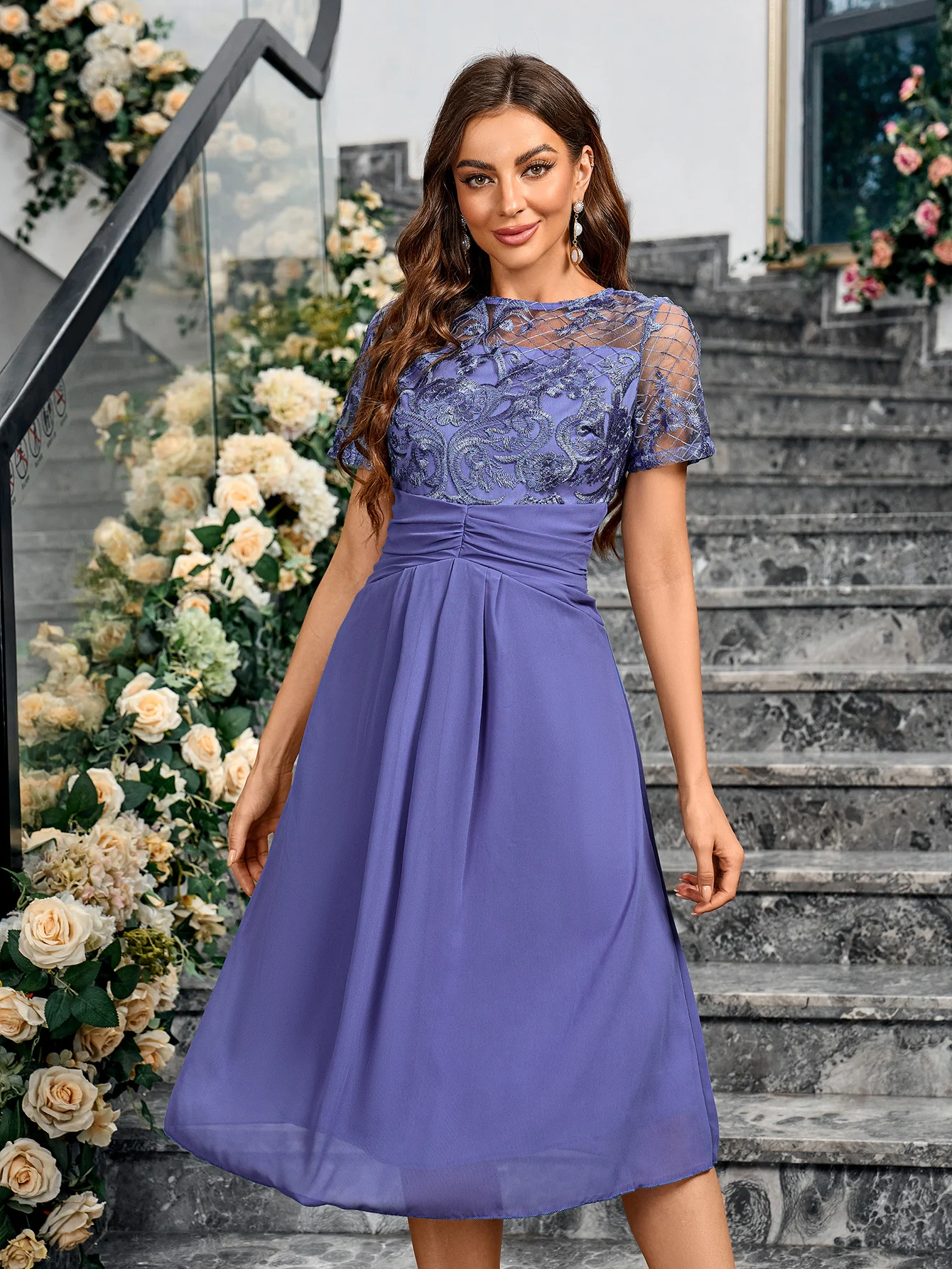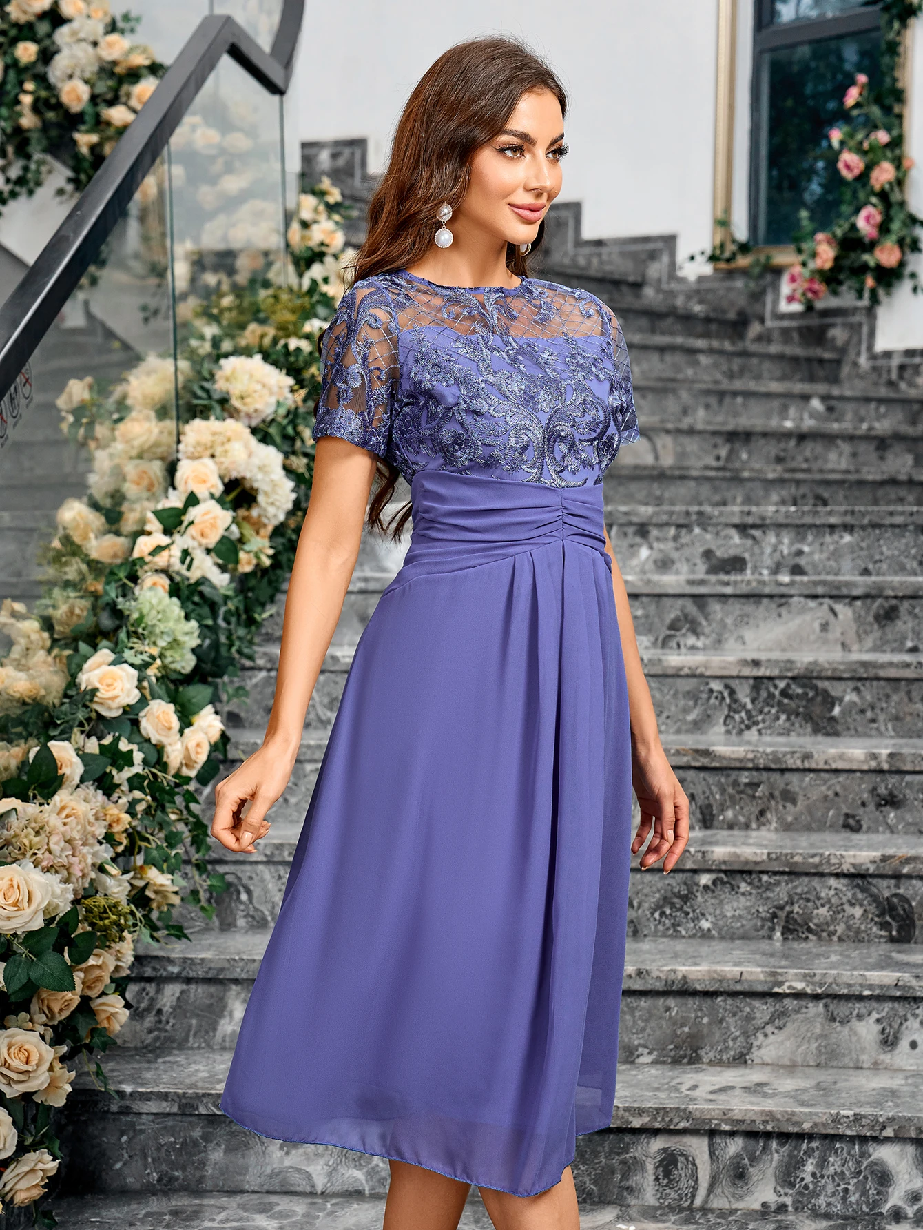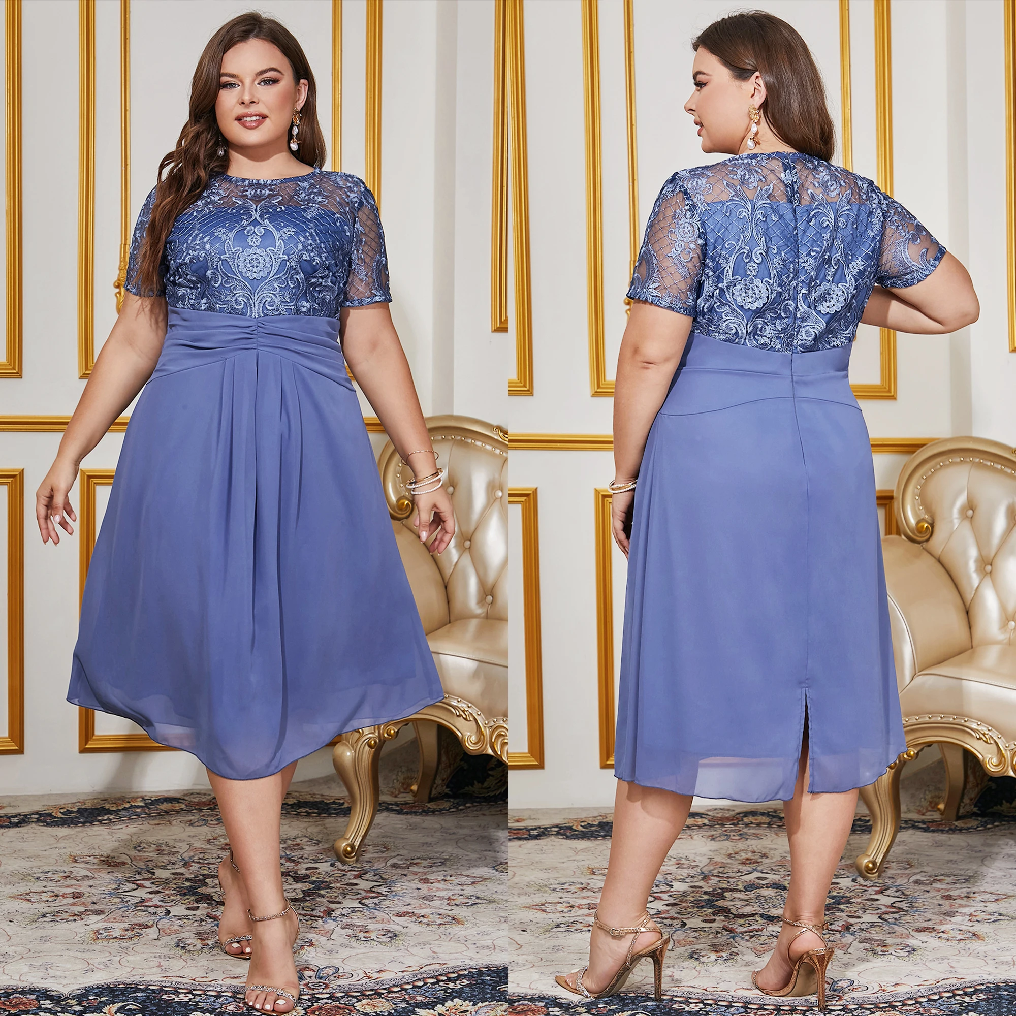 Fleepmart Women’s Plus Size 4XL Short Sleeve Round Neck Dating Party Beach Vacation Light Blue Solid Color Dresses