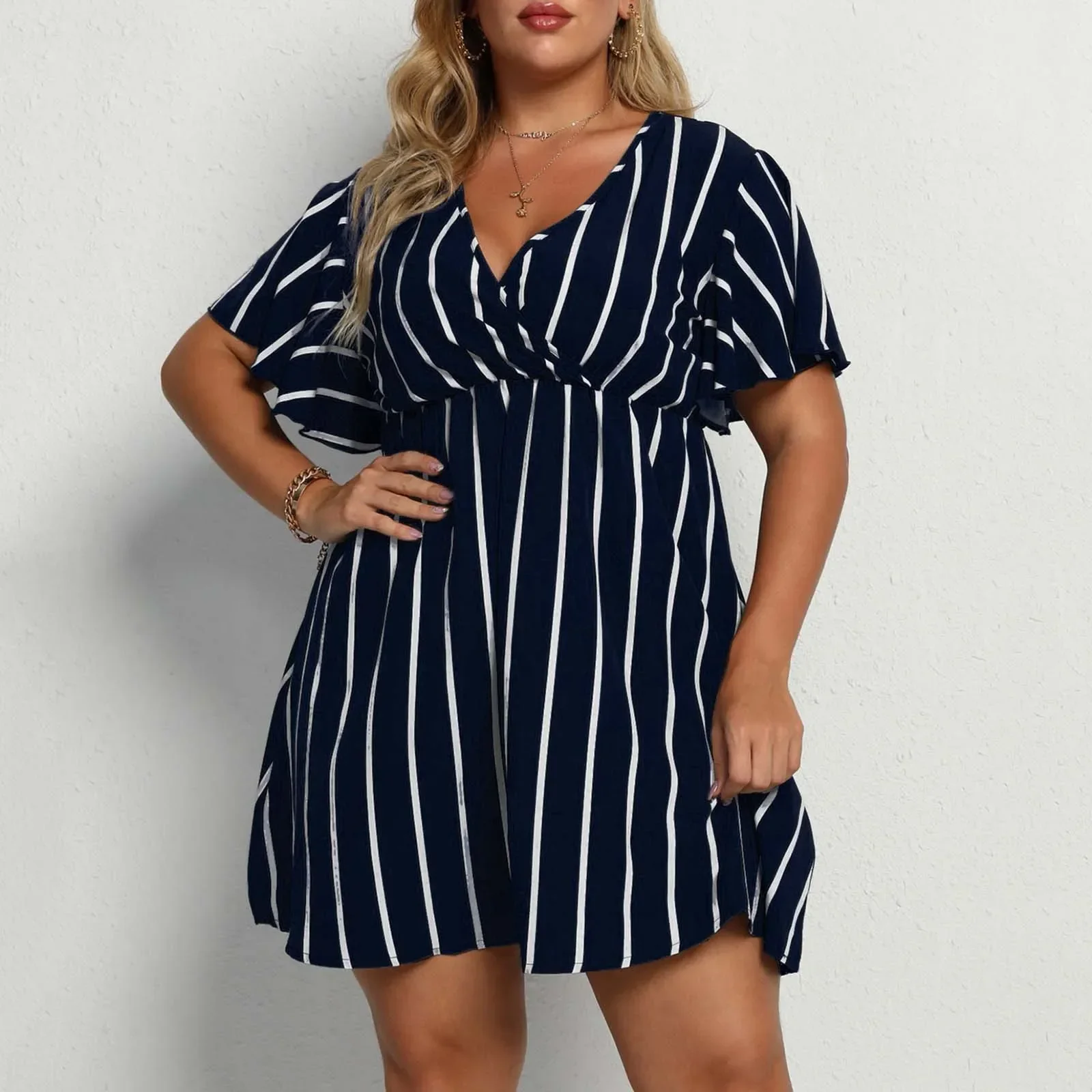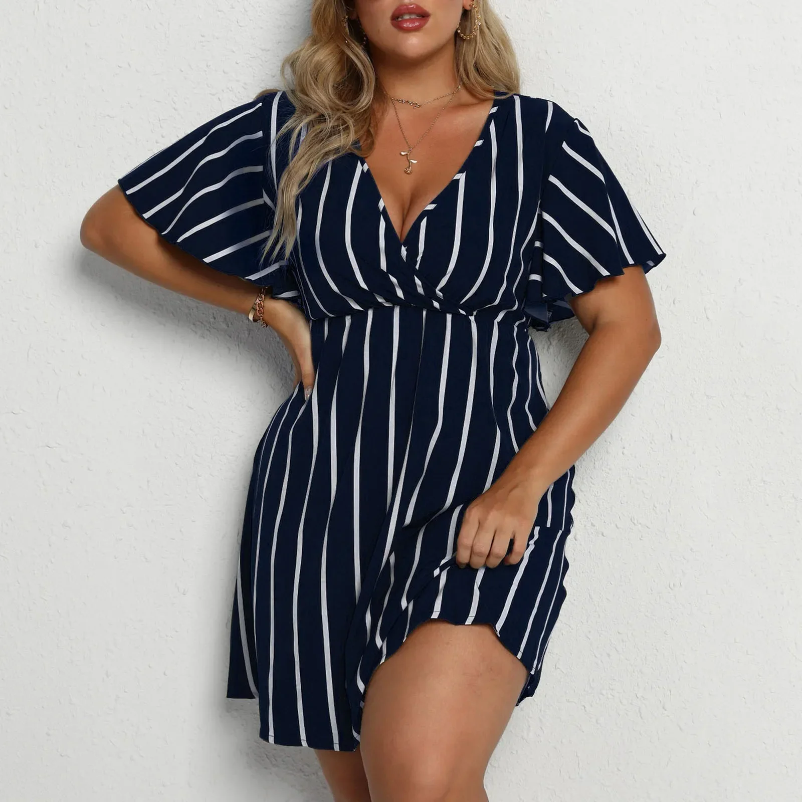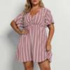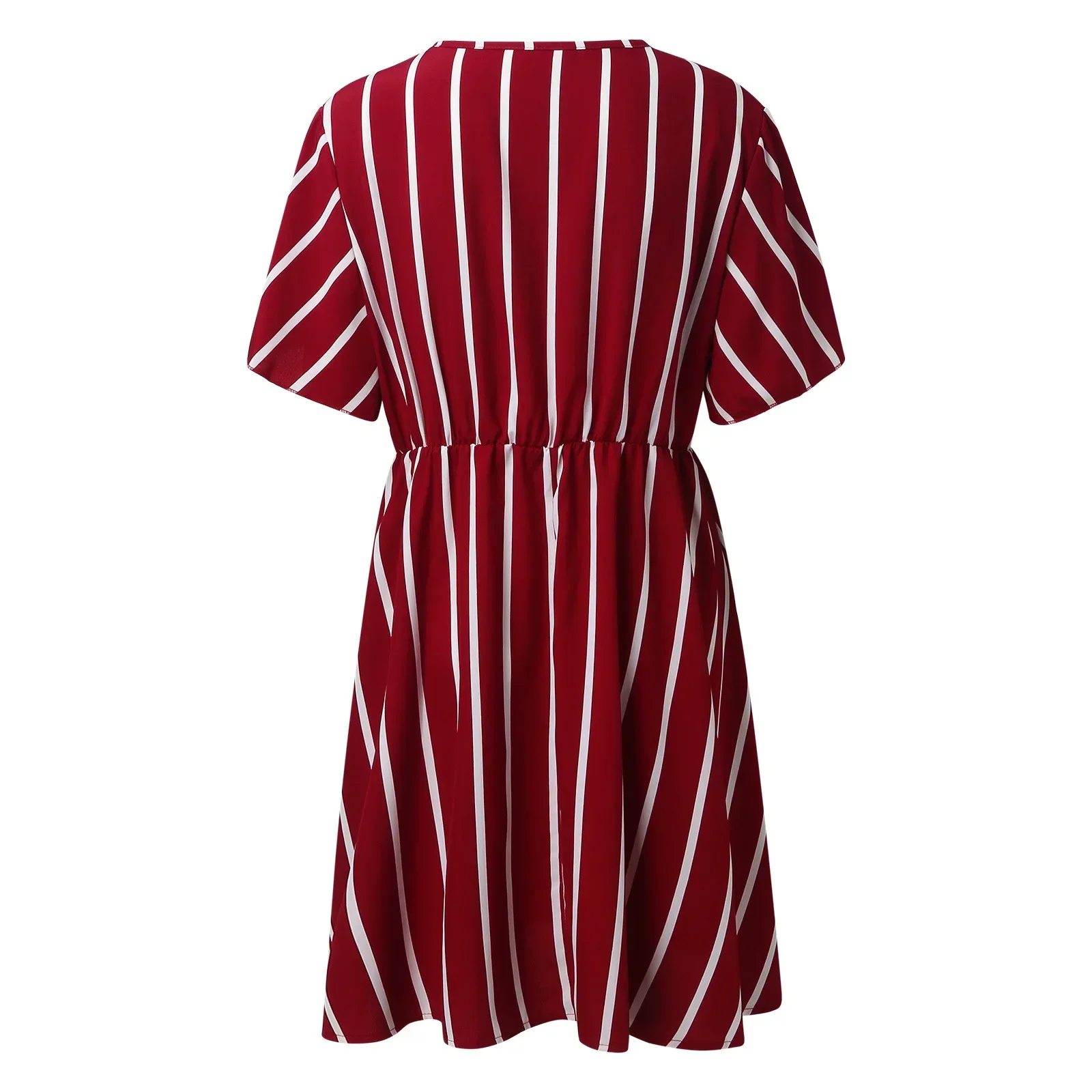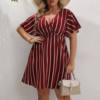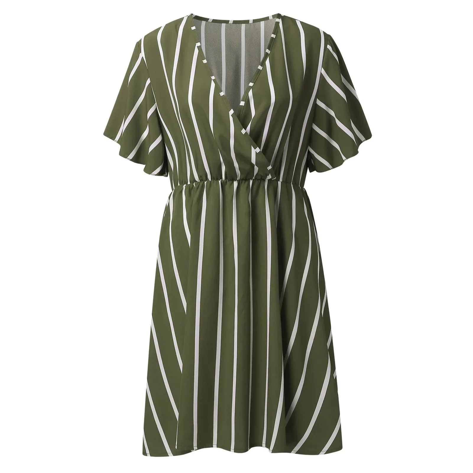 Fleepmart Women’s plus size striped V-neck short sleeved dress Amazon waist cinched loose casual bohemian dress