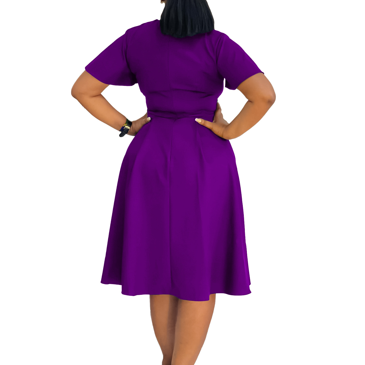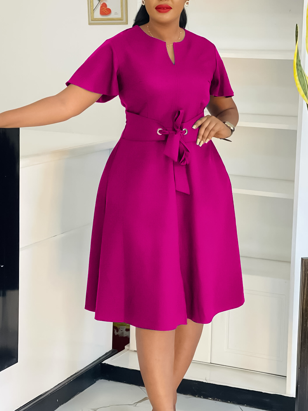 Fleepmart Women’s plus Size Swing Dress Summer 2025 Fashion Temperament Solid Color Lace-Up Short-Sleeved Elegant Casual Maxi Dress