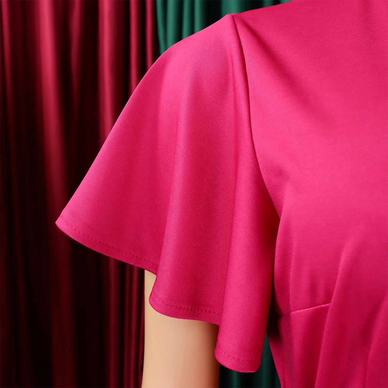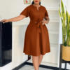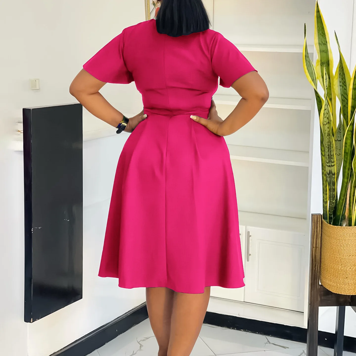 Fleepmart Women’s plus Size Swing Dress Summer 2025 Fashion Temperament Solid Color Lace-Up Short-Sleeved Elegant Casual Maxi Dress