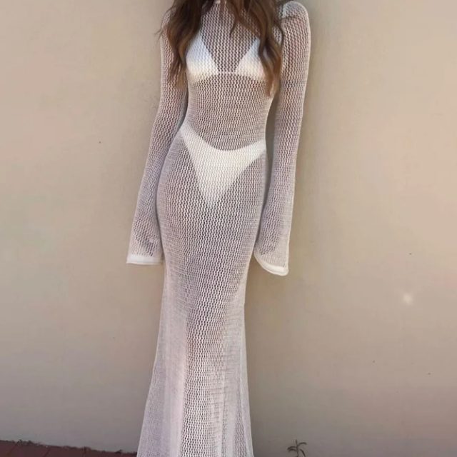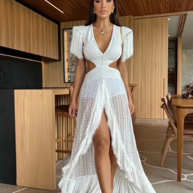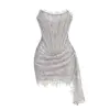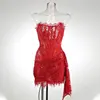 Fleepmart Women’s Sexy Lace Sheer High Waist Lace Dress Elegant Printed Strapless Slim Evening Dress