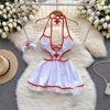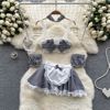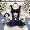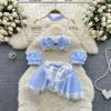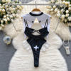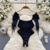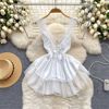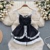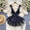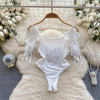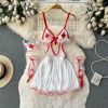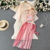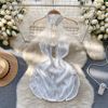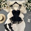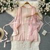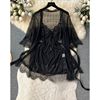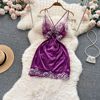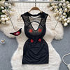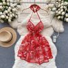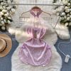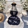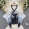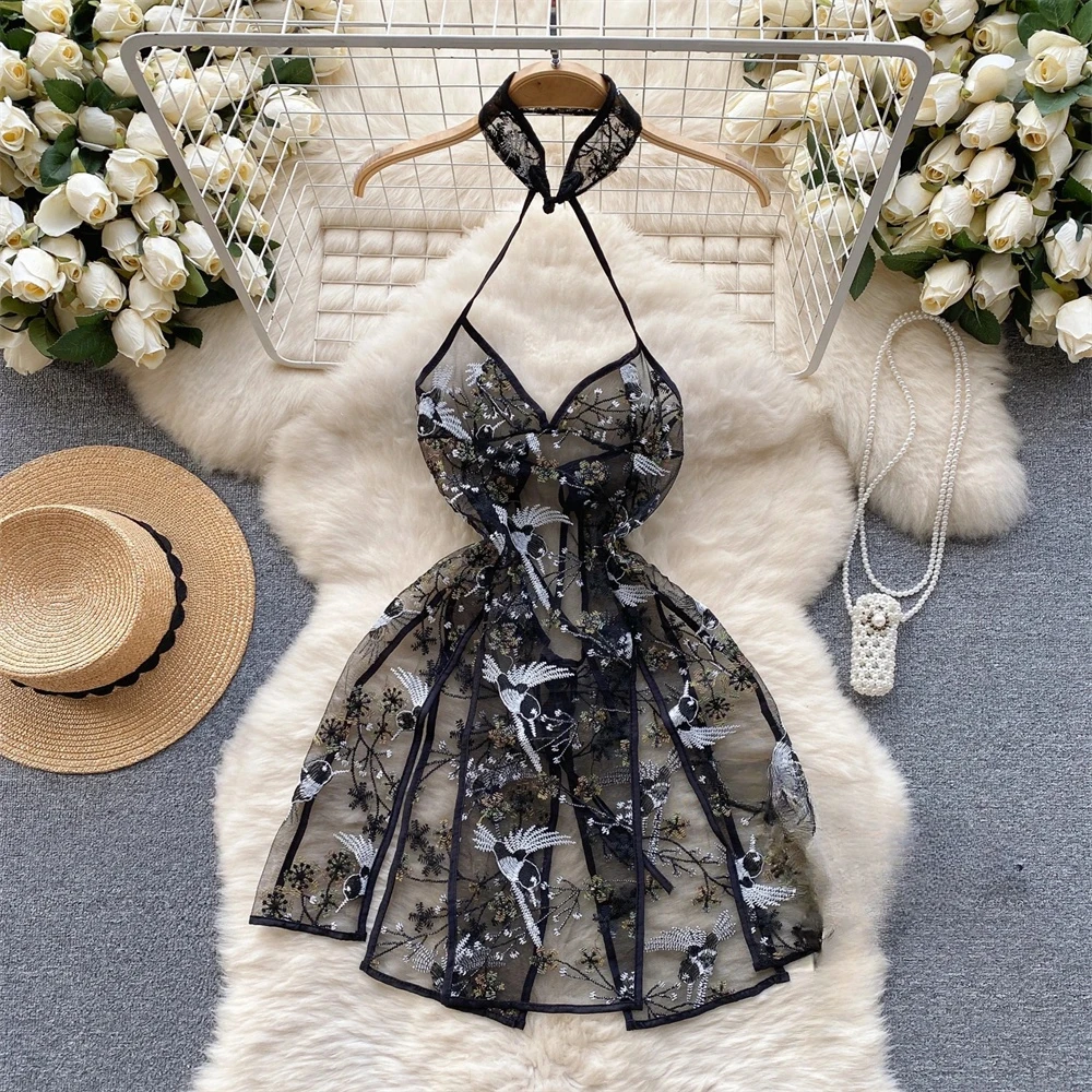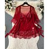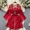 Fleepmart Women’s Sexy Slim Hollow Out Butterfly Embroidery Lace Split Dress Suit Mesh Sheer Traditional Embroidered Stripe Cheongsam Set