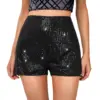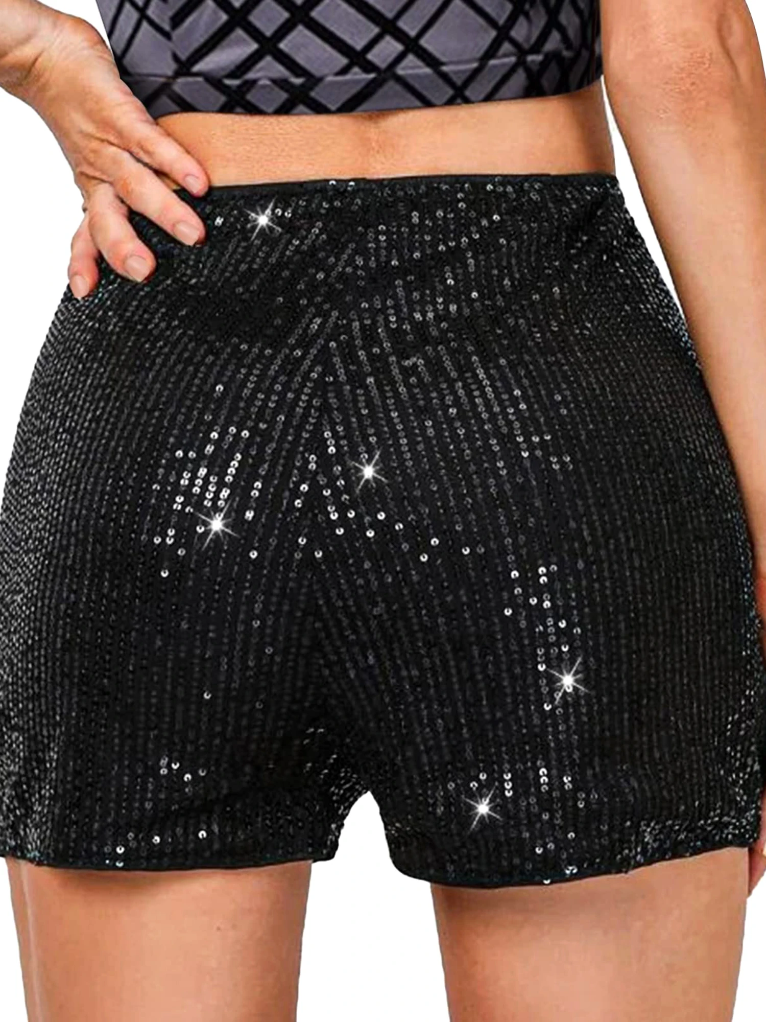 Fleepmart Women’s Shimmering Sequin Mid Rise Elastic Waistband Straight Leg Shorts Vintage Glitter Hot Pants for Party