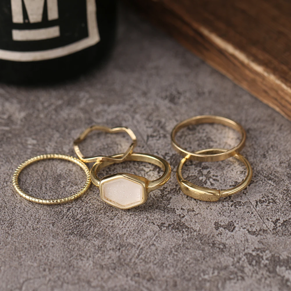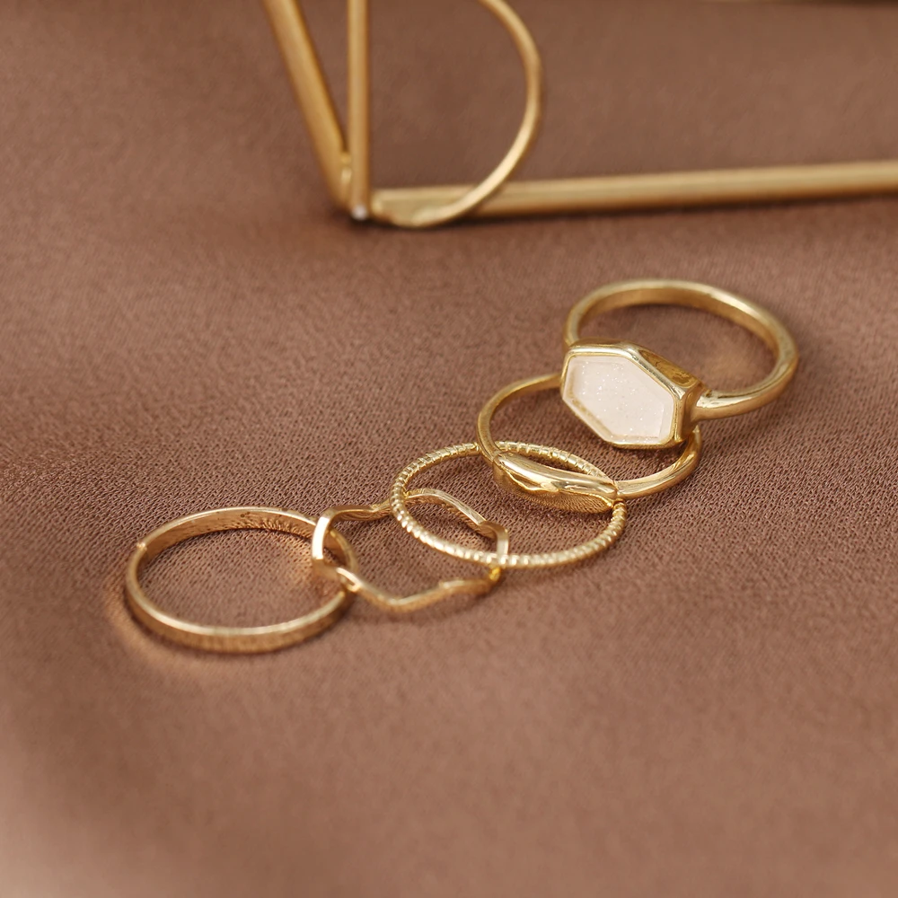 Fleepmart Women's Simple Gold Alloy Joint Ring Set Vintage Geometric Midi Round Twist Weave Knuckle Finger Rings Bohemian Jewelry Gift