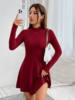 Fleepmart Women’s slim fit half high collar waist cinched A-line skirt long sleeved pit stripe dress
