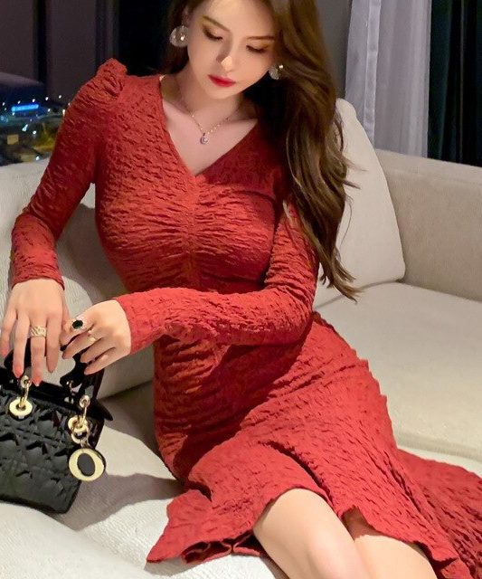 Fleepmart Women’s Solid Color Simple High Neck Long Sleeved Sweater Dress
