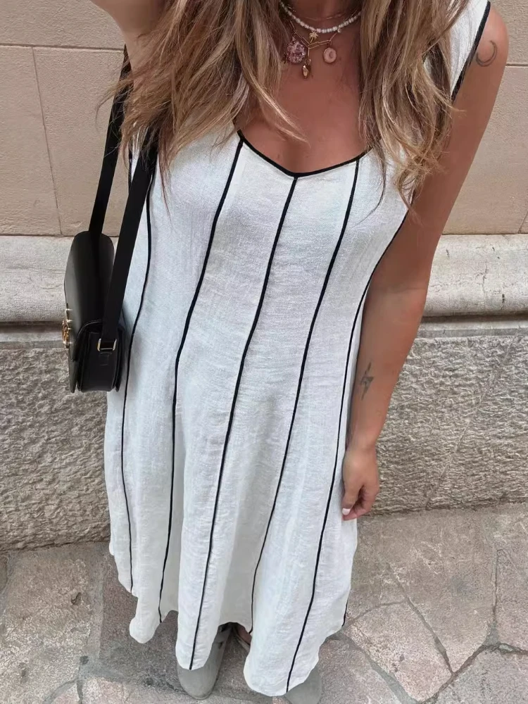 Fleepmart Women’s Striped U-neck Sleeveless Suspenders Casual Long Fall Chic Party Dresses