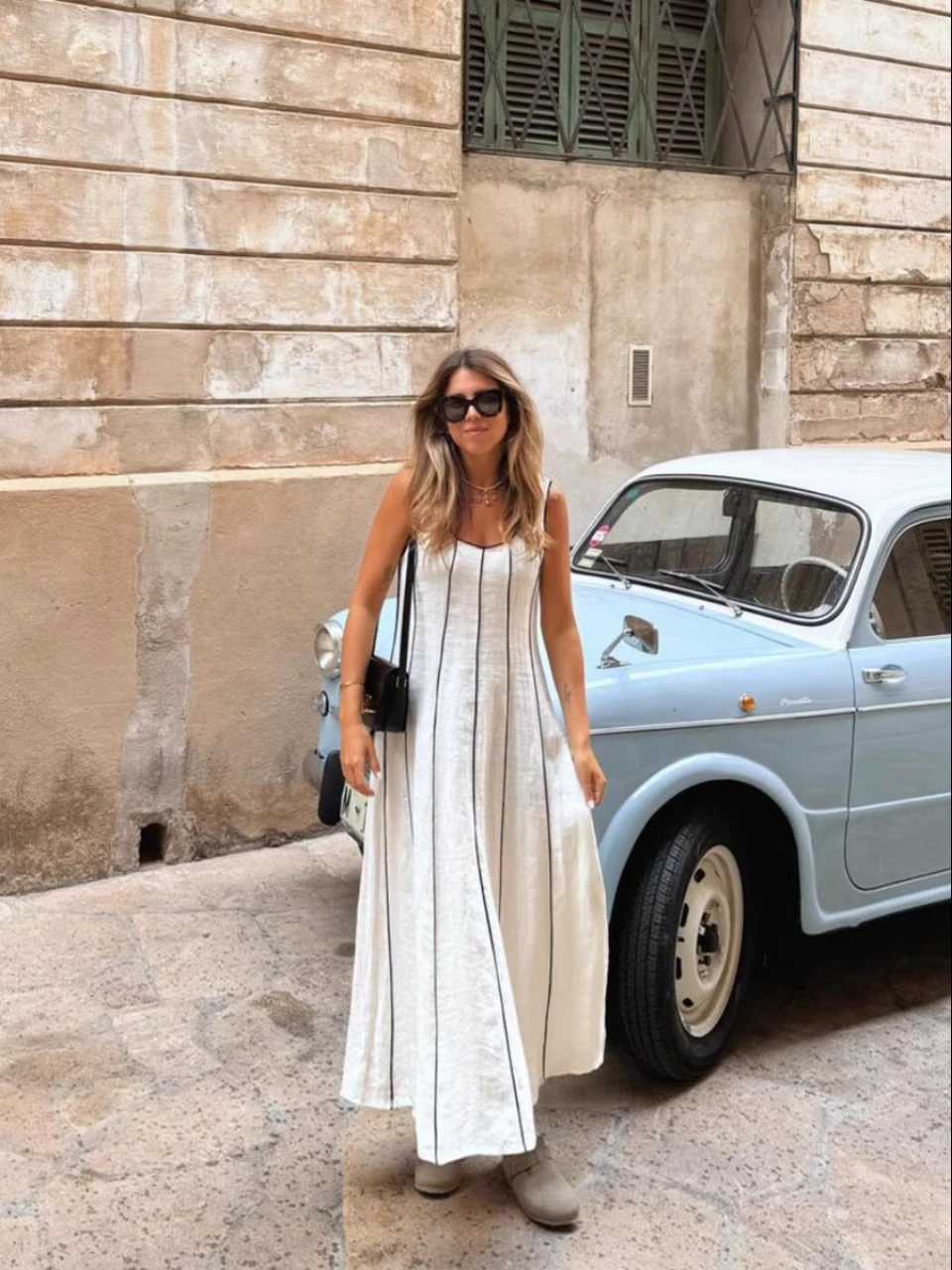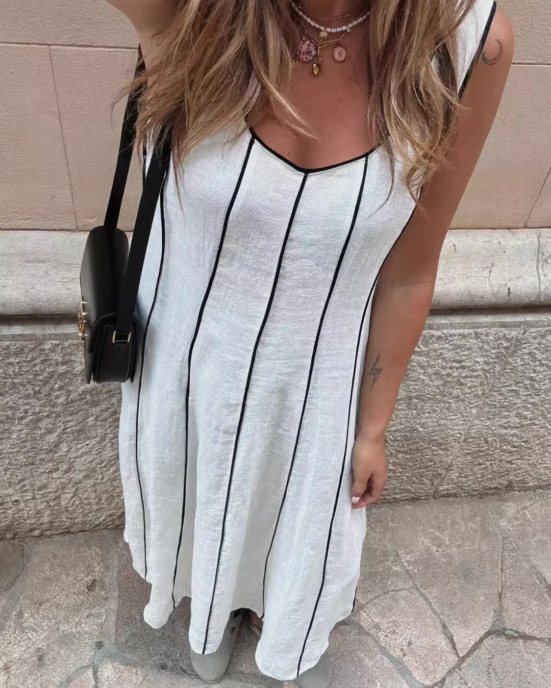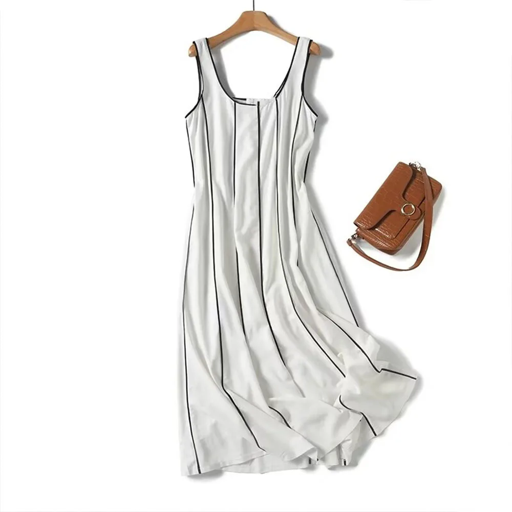 Fleepmart Women’s Striped U-neck Sleeveless Suspenders Casual Long Fall Chic Party Dresses