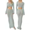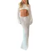 Fleepmart Womens Summer 2Pieces Crochet Swimsuit Cover Ups Off Shoulder Knit Crop Pullovers+Long Skirt Set Beachwear