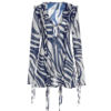 Fleepmart Women’s Summer Boho Bow Tie Up Long Sleeve V Neck Zebra Print Ruffled See-through Short Mini Sundress