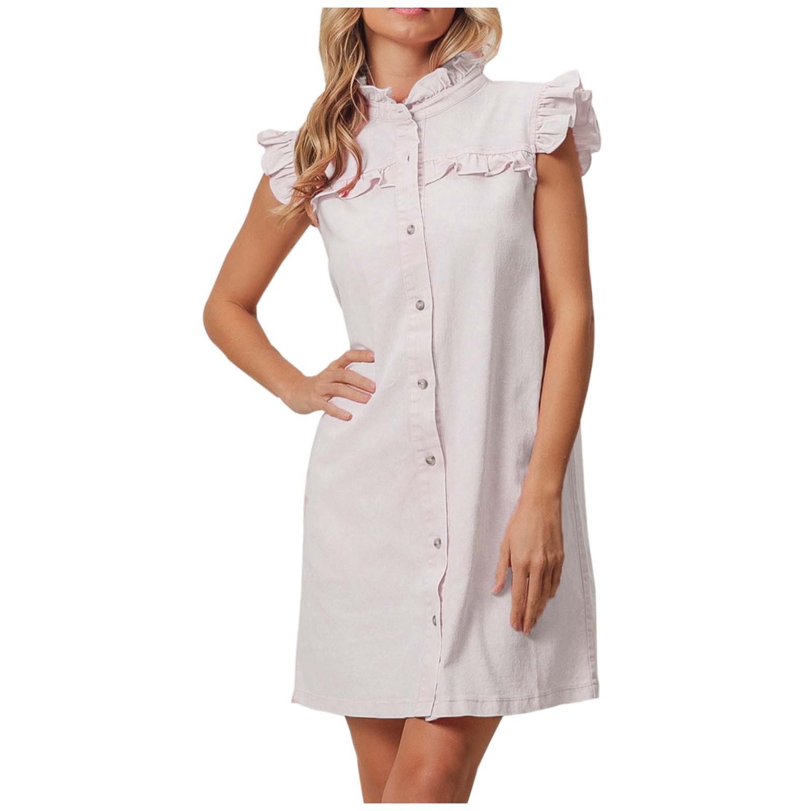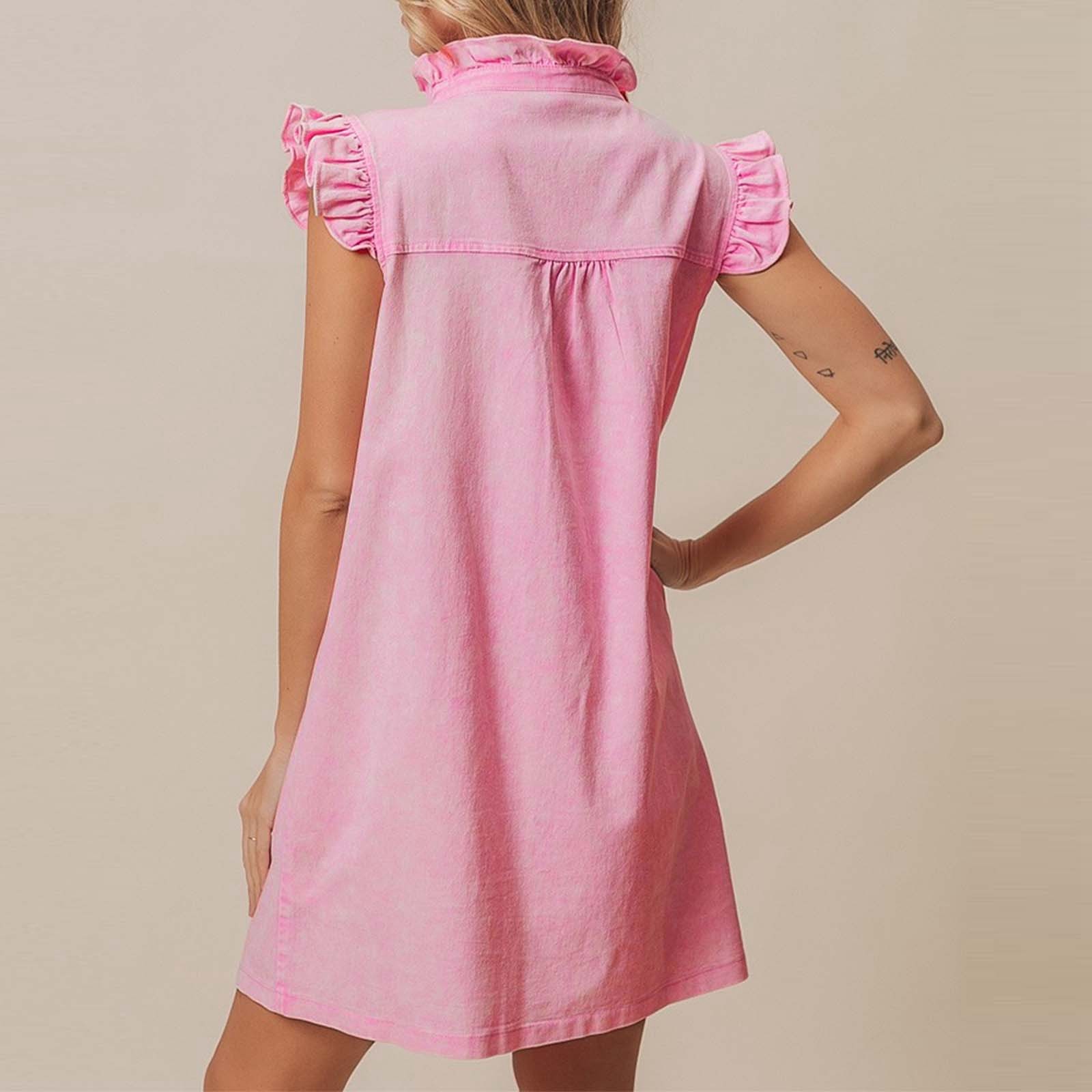 the warmth of summer in our Women’s Lightweight Flutter Sleeve Denim Shirt Dress, a perfect blend of style and comfort. Designed with your relaxation in mind, this dress is crafted from breathable denim, tailored for those balmy days when you desire both fashion and functionality.