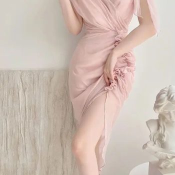 Fleepmart Women’s Summer Ethnic Pattern Backless Split Thigh Dress Ladies Summer Clothes Boho Fashion Frill Trim Long Dress for Beach
