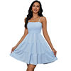 t Fleepmart Women’s summer fashion casual woven thin shoulder fold tight mid-length halter solid color dress