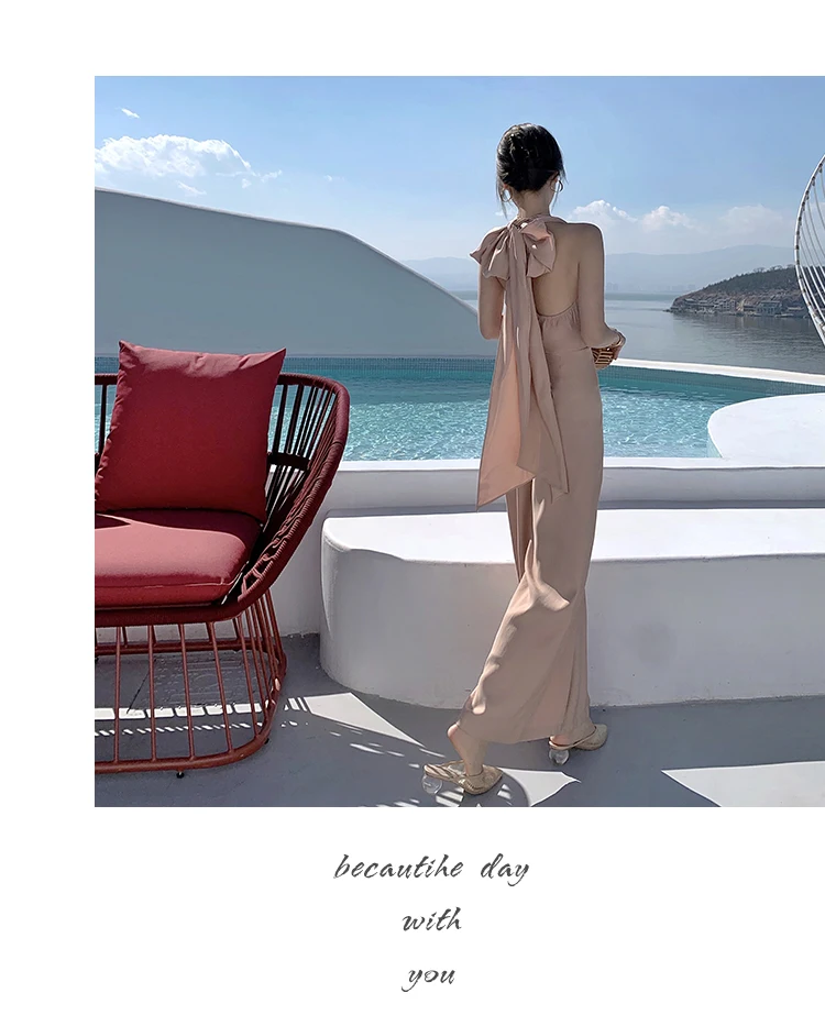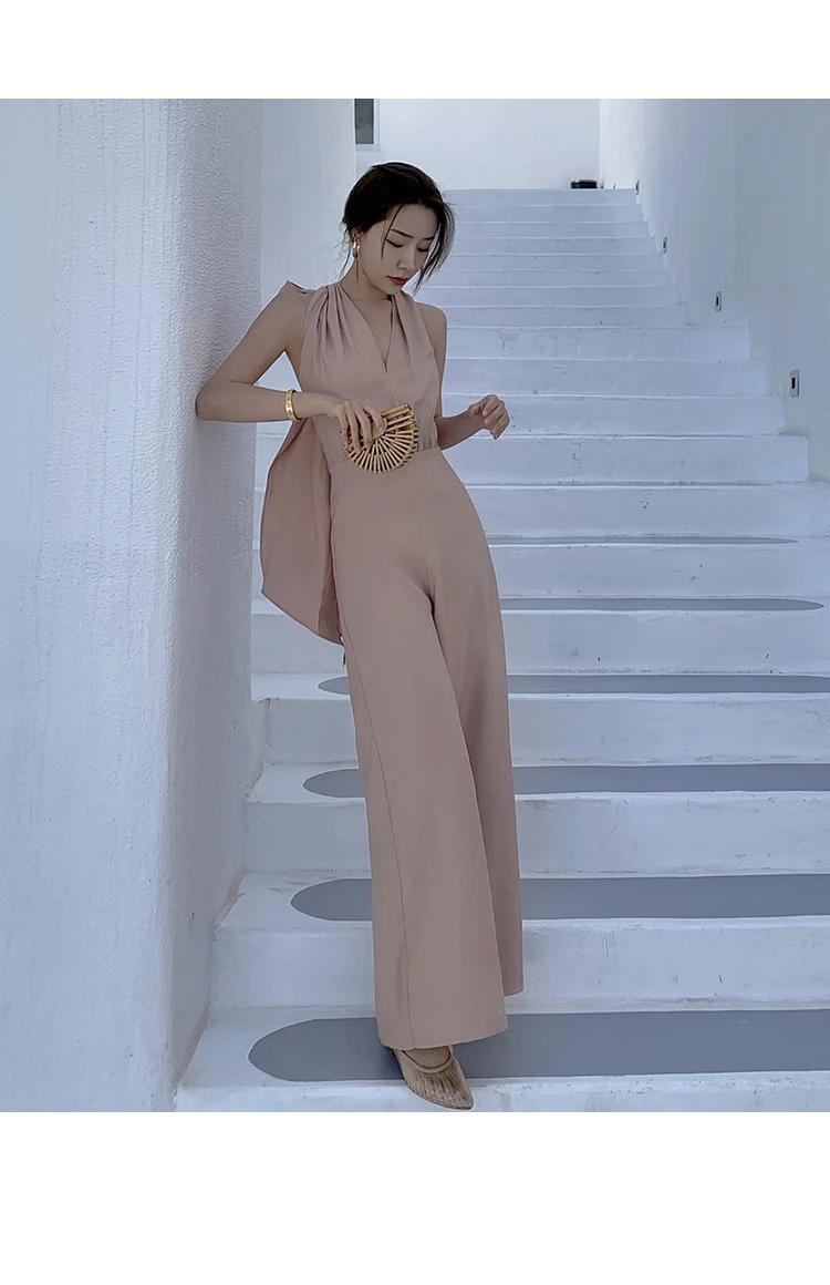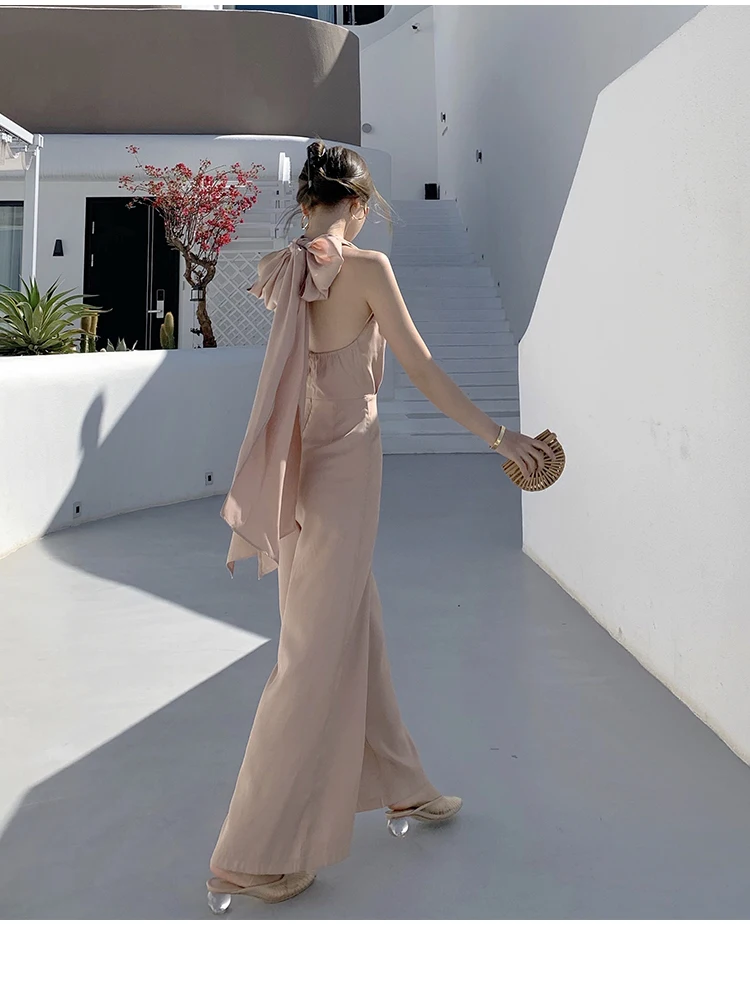 Fleepmart Women’s Summer Sexy Backless Elegant Jumpsuit Halter Sleeveless Casual Slim Party Rompers Female Fashion Beach Holiday Overalls