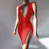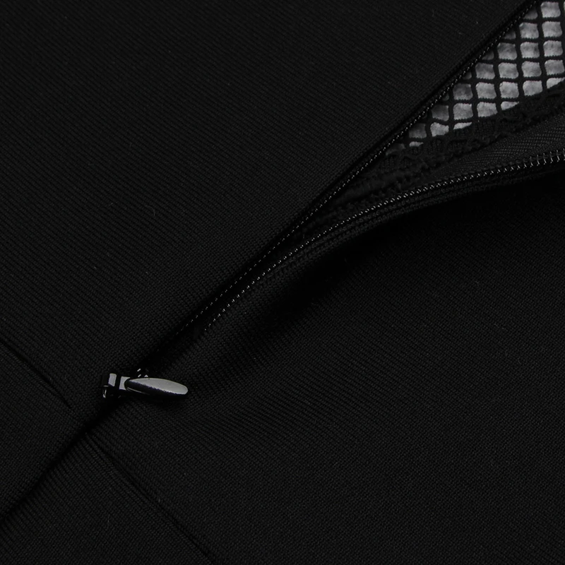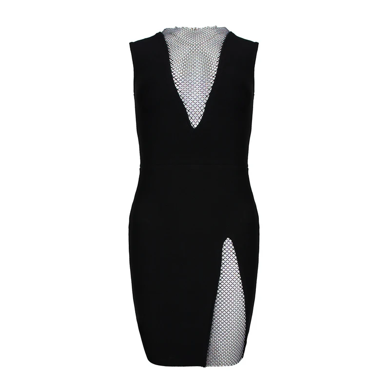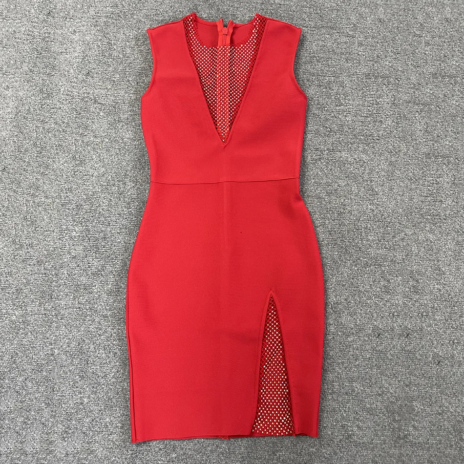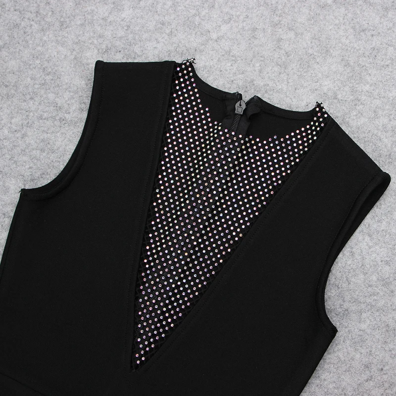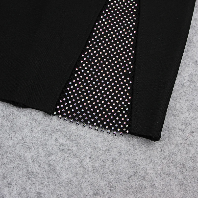 Fleepmart Women’s Summer Sexy O-Neck Mesh Diamond Red Black Mini Elegant Stitching Evening Party Bandage Dress