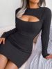 Fleepmart Women’s Winter Bodycon Sweater Dress Long Sleeve Round Neck Cutout Waist Ribbed Knit Bodycon Mini Skirt Solid