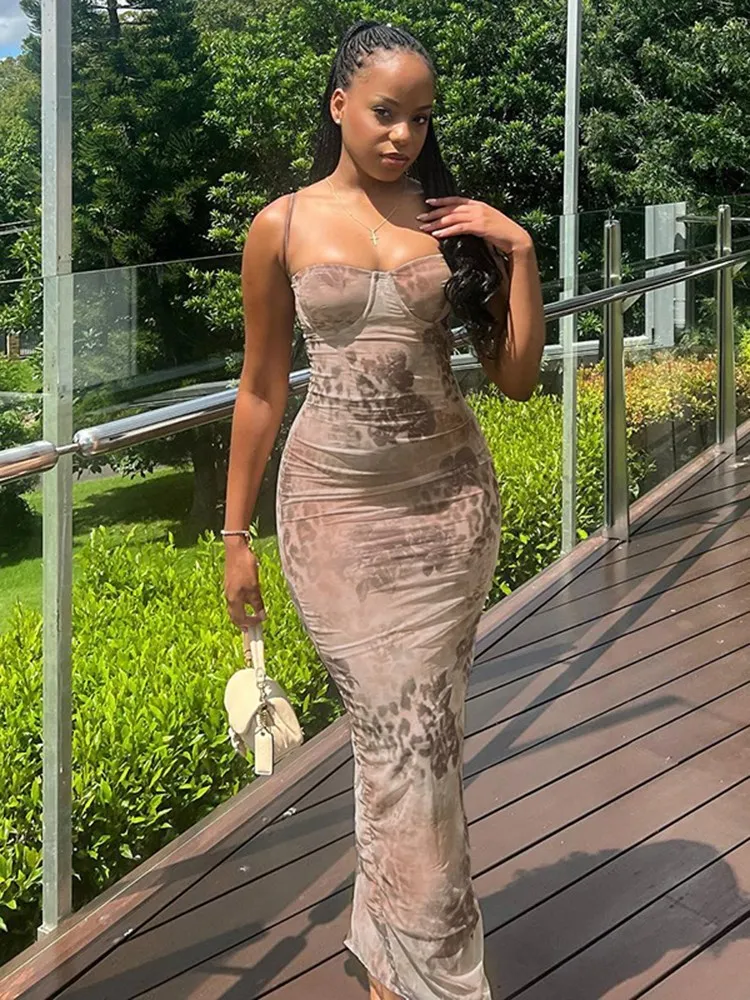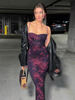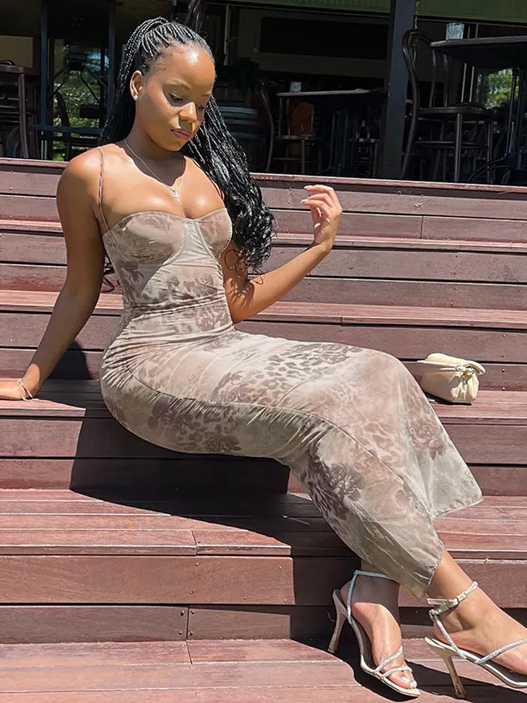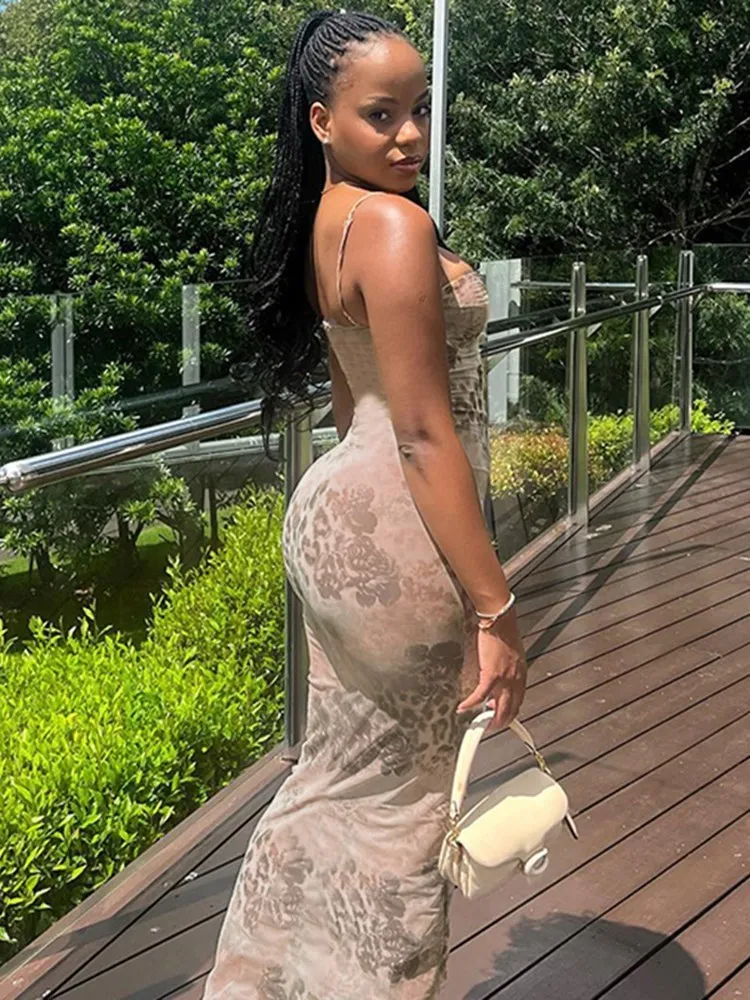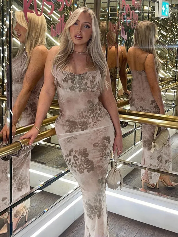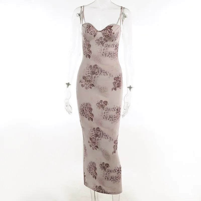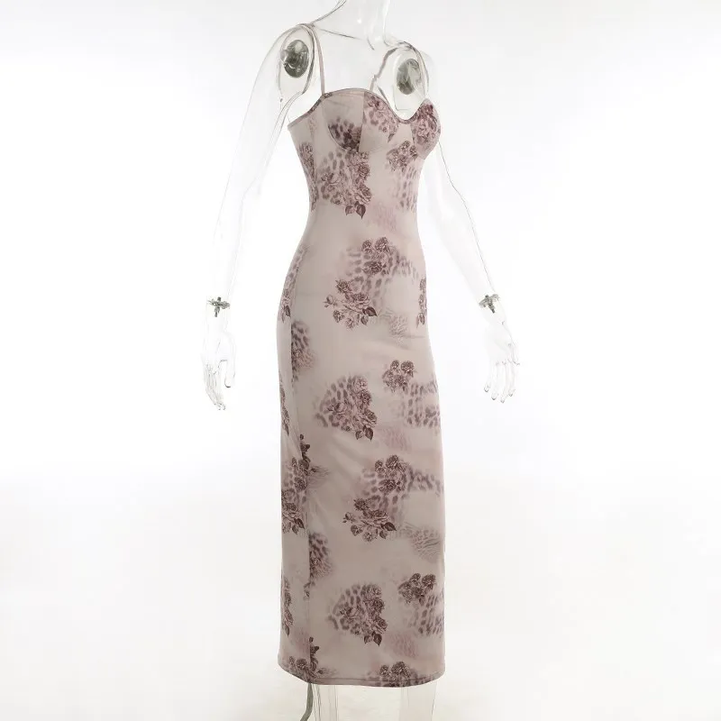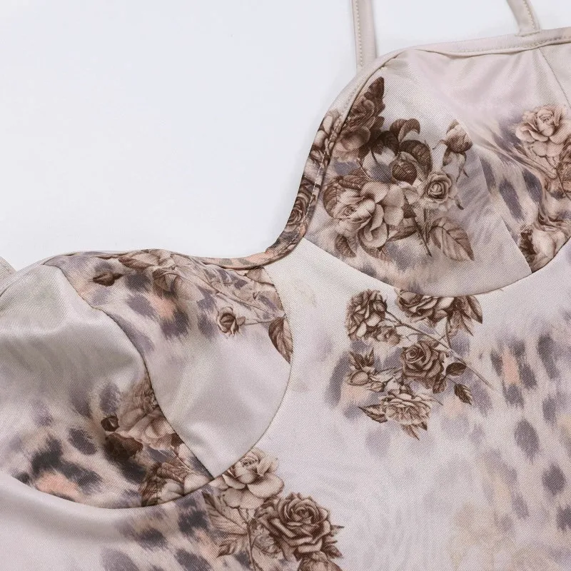 Fleepmart Y2k Floral Print Strappy Dress Women’s Casual Spaghetti Strap Wrap Sleeveless Lace Dress Elegant Female Robe Vestidos