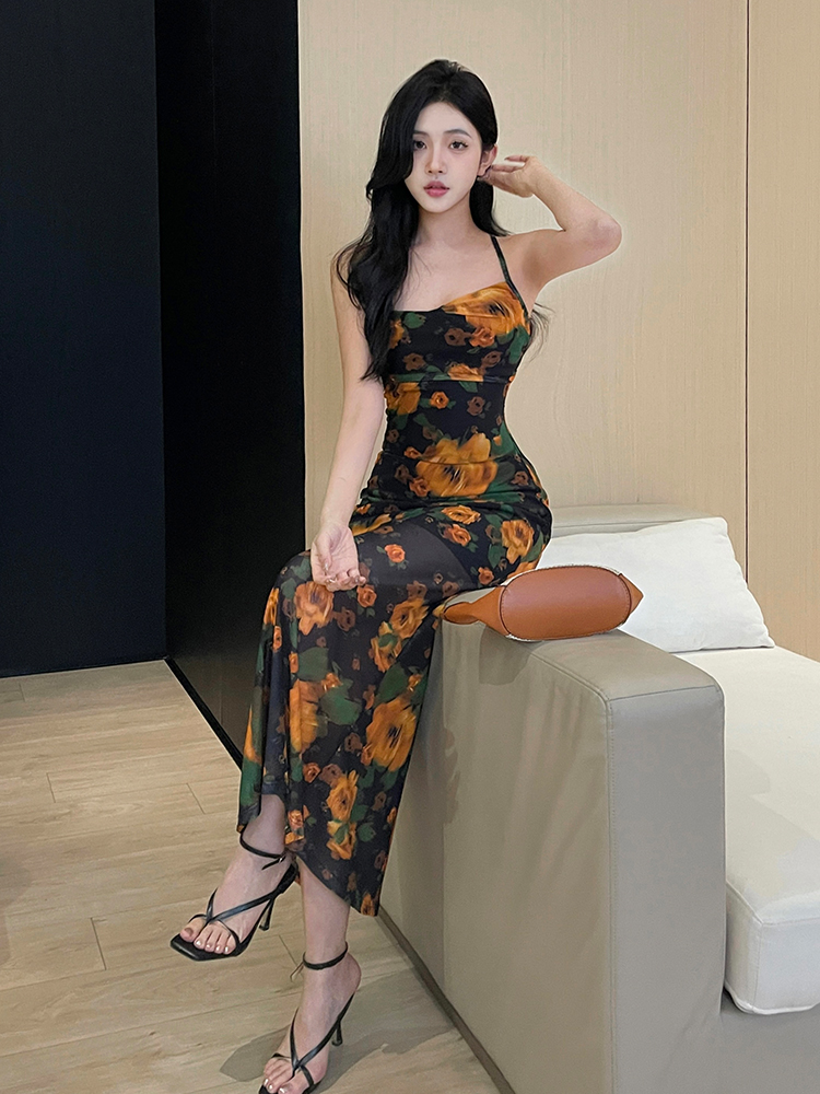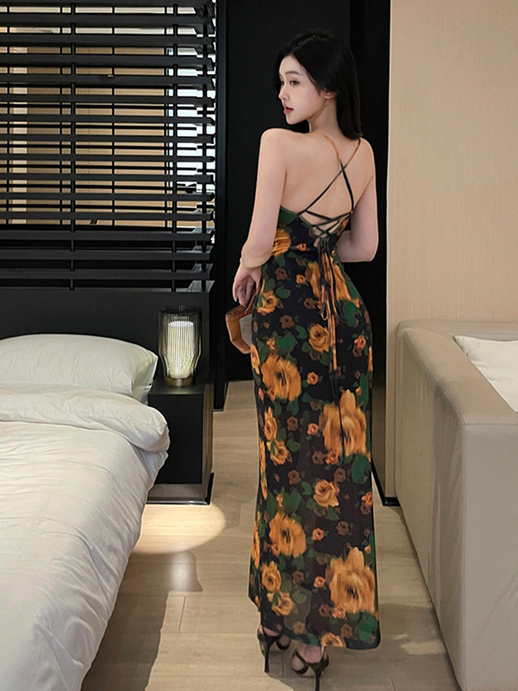 Fleepmart Y2K Rose Flower Backless Cut Out Dress Women Sexy Sleeveless Summer Elegant Beachwear Chic Party Casual Dresses