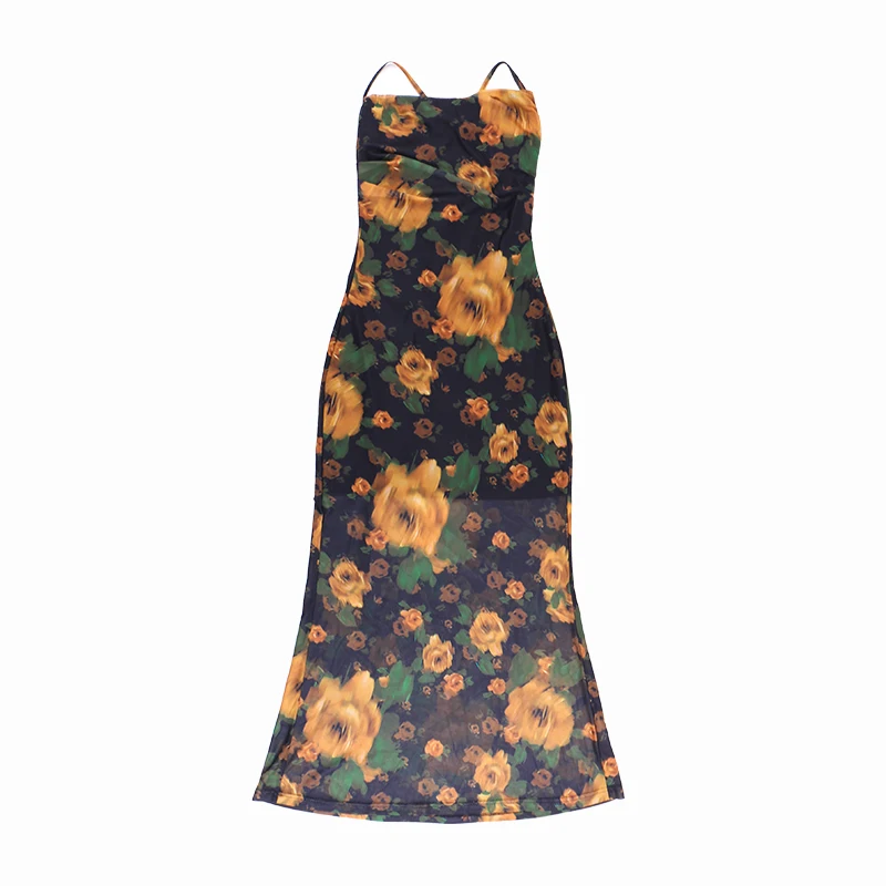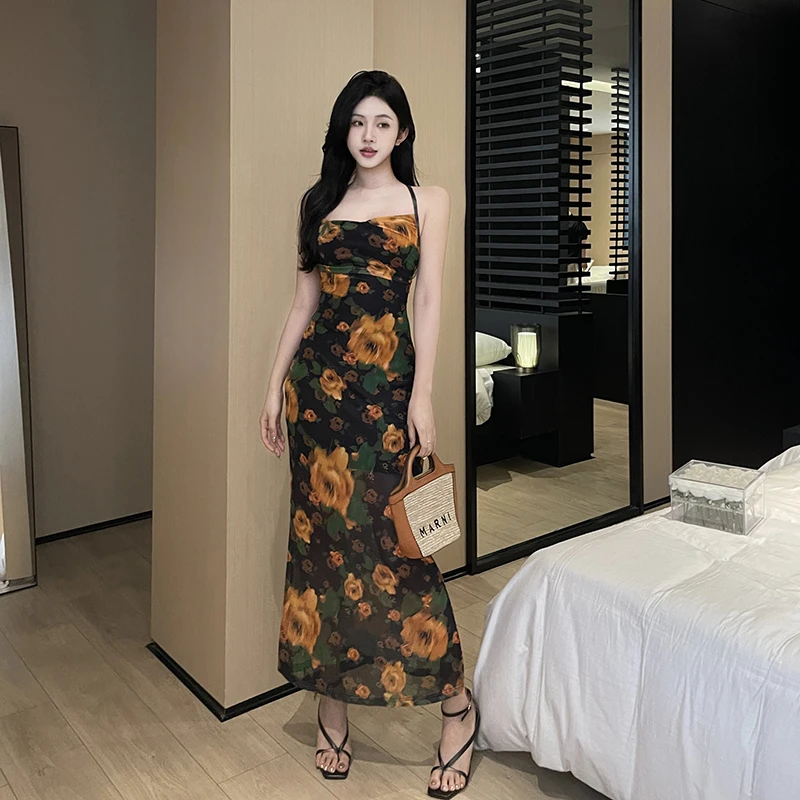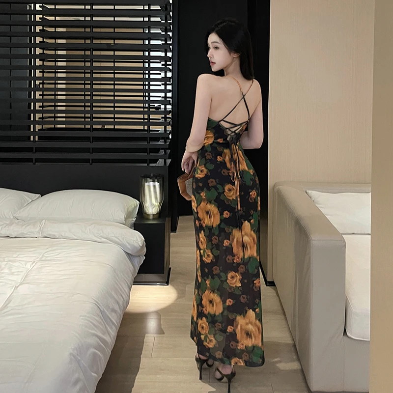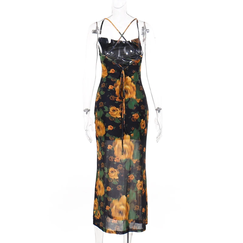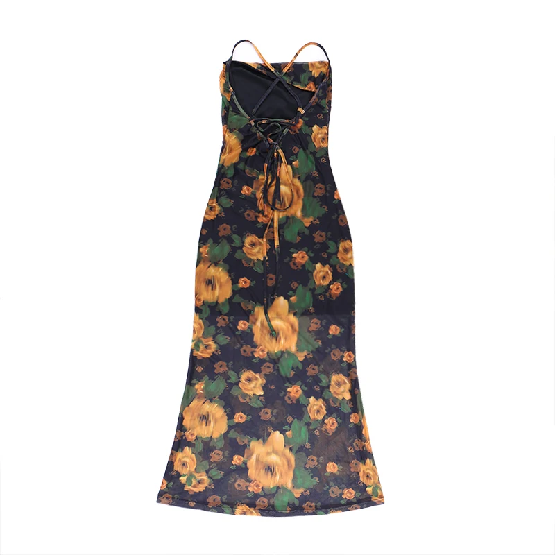 Fleepmart Y2K Rose Flower Backless Cut Out Dress Women Sexy Sleeveless Summer Elegant Beachwear Chic Party Casual Dresses