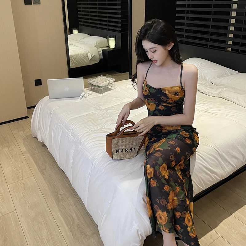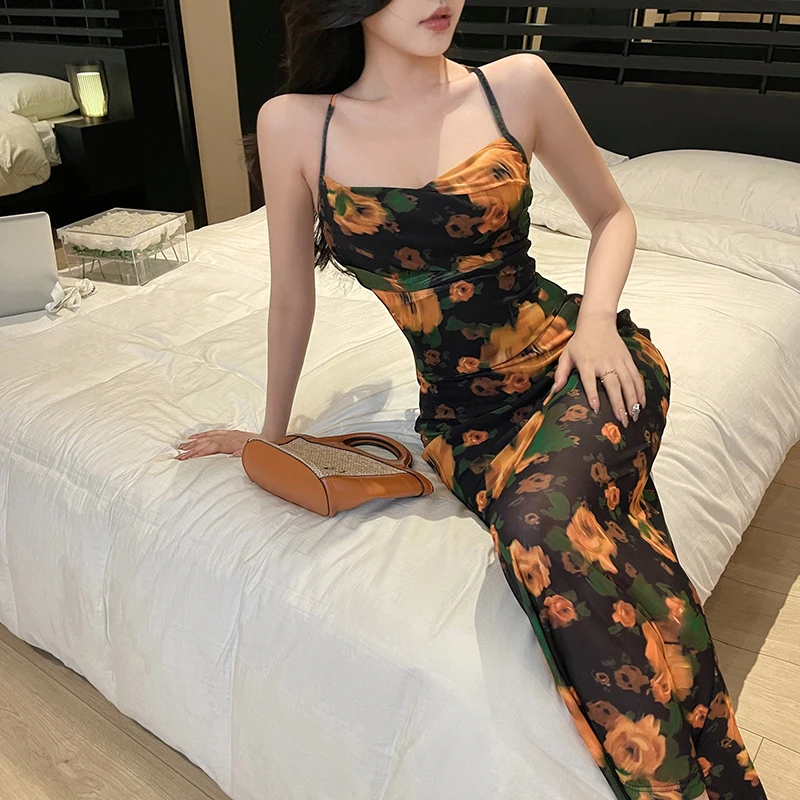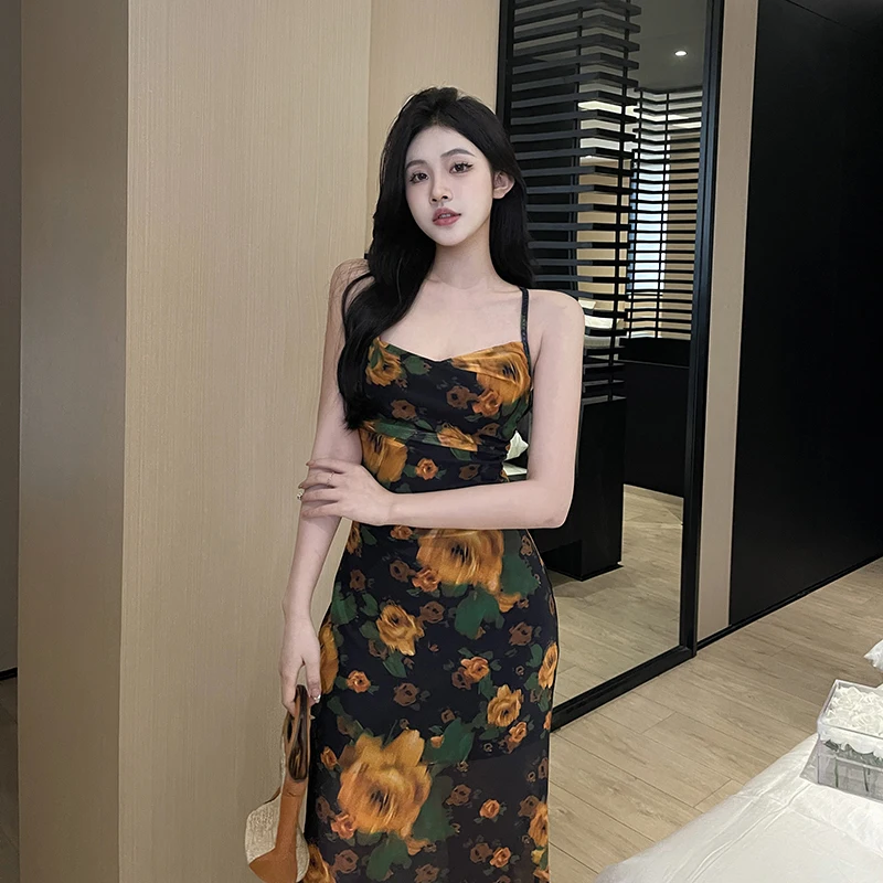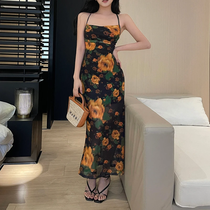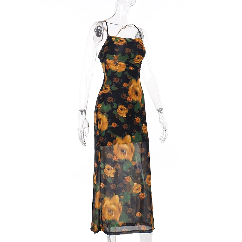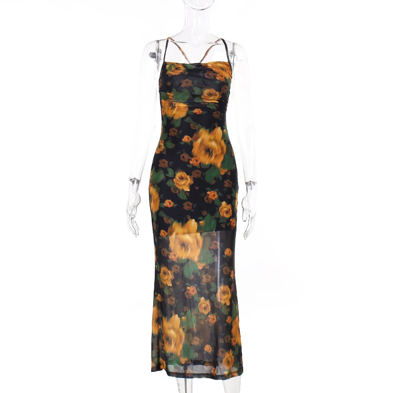 Fleepmart Y2K Rose Flower Backless Cut Out Dress Women Sexy Sleeveless Summer Elegant Beachwear Chic Party Casual Dresses