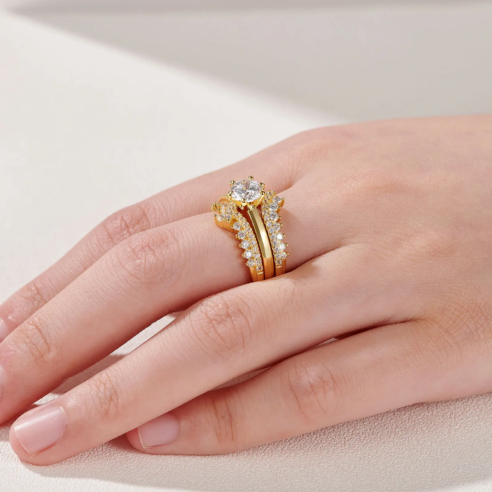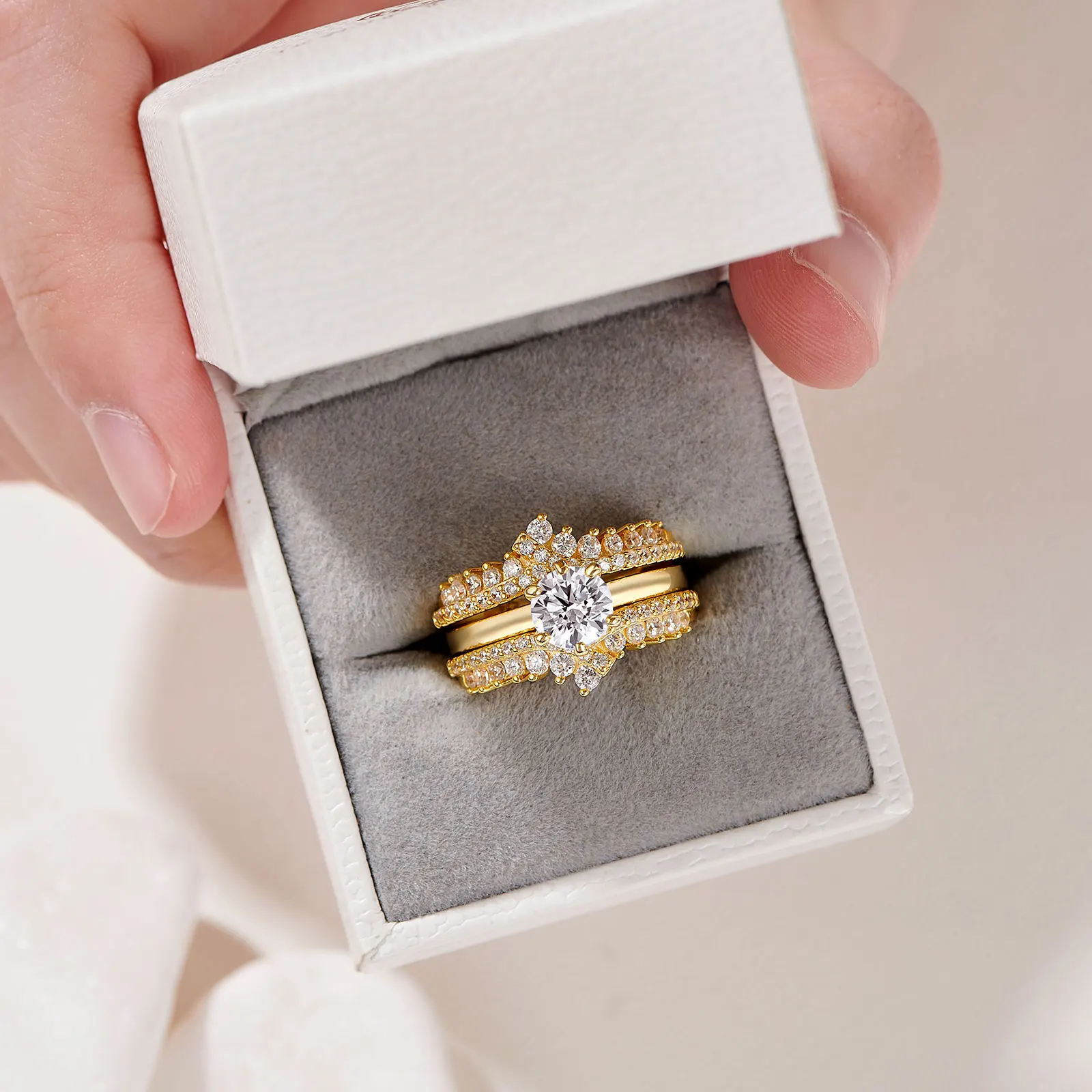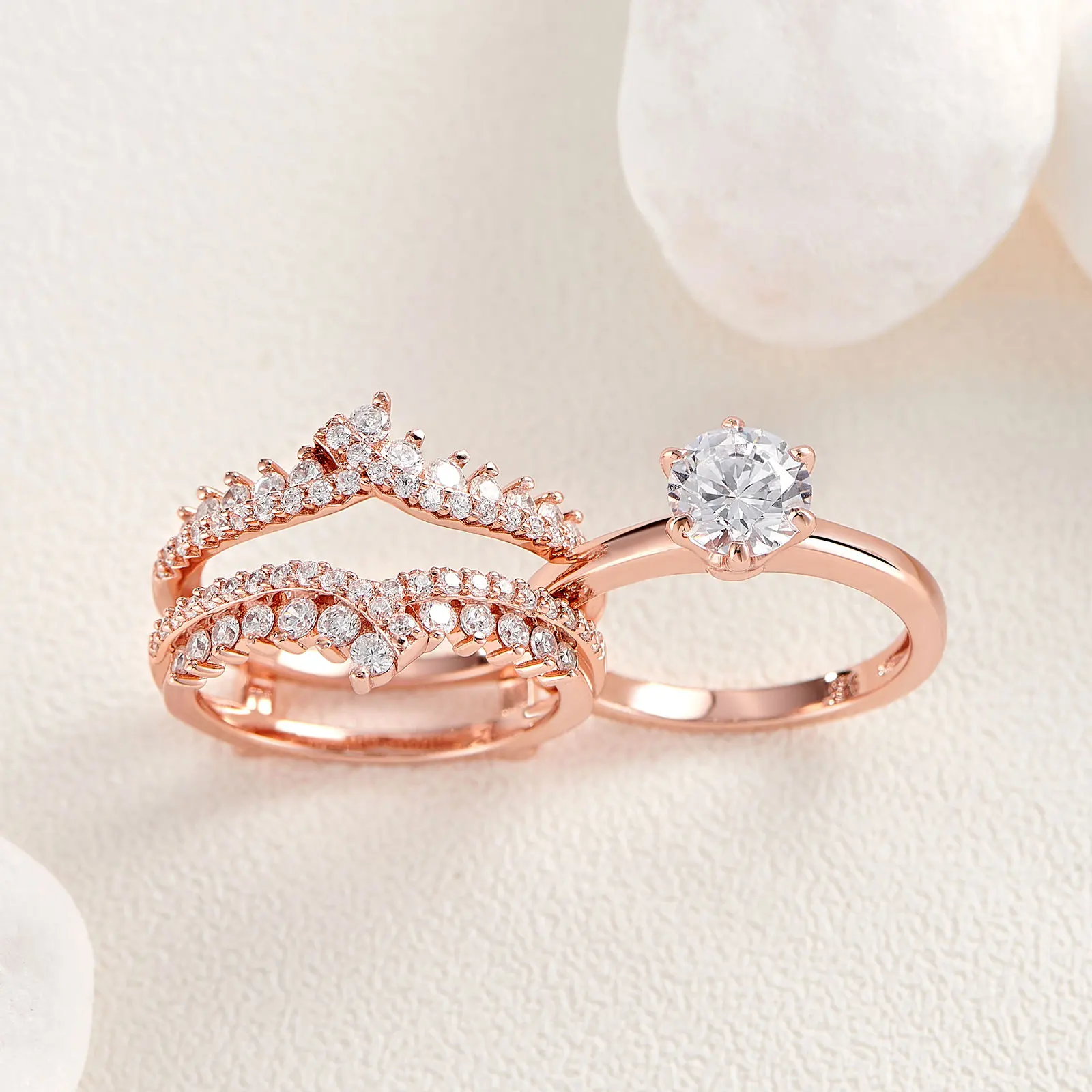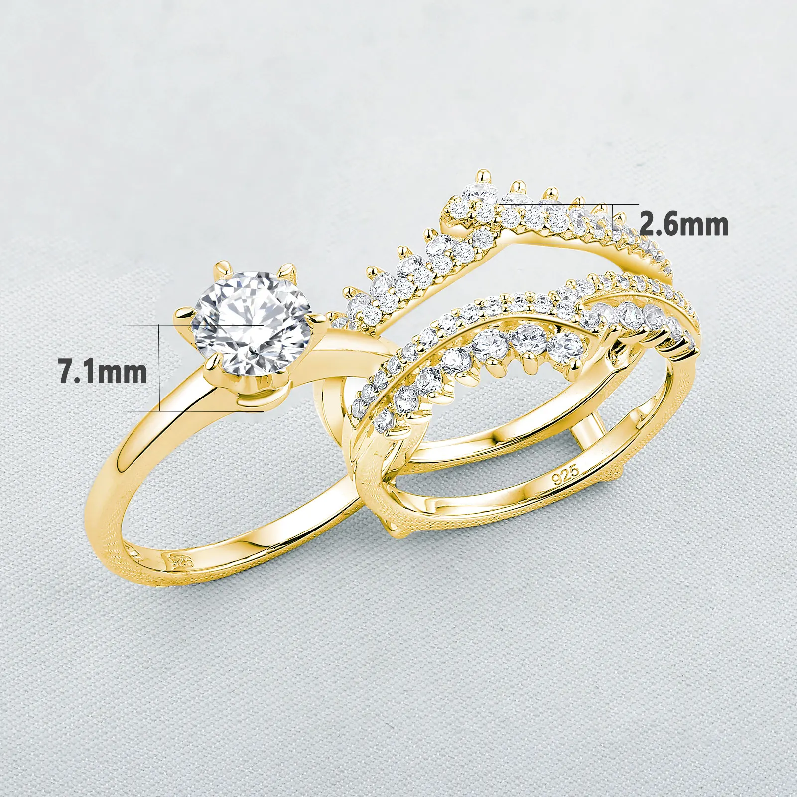 Fleepmart Yellow/Rose Gold 925 Sterling Silver Engagement Ring Set for Women Enhancer Wedding Band High Grade Zircon Jewelry