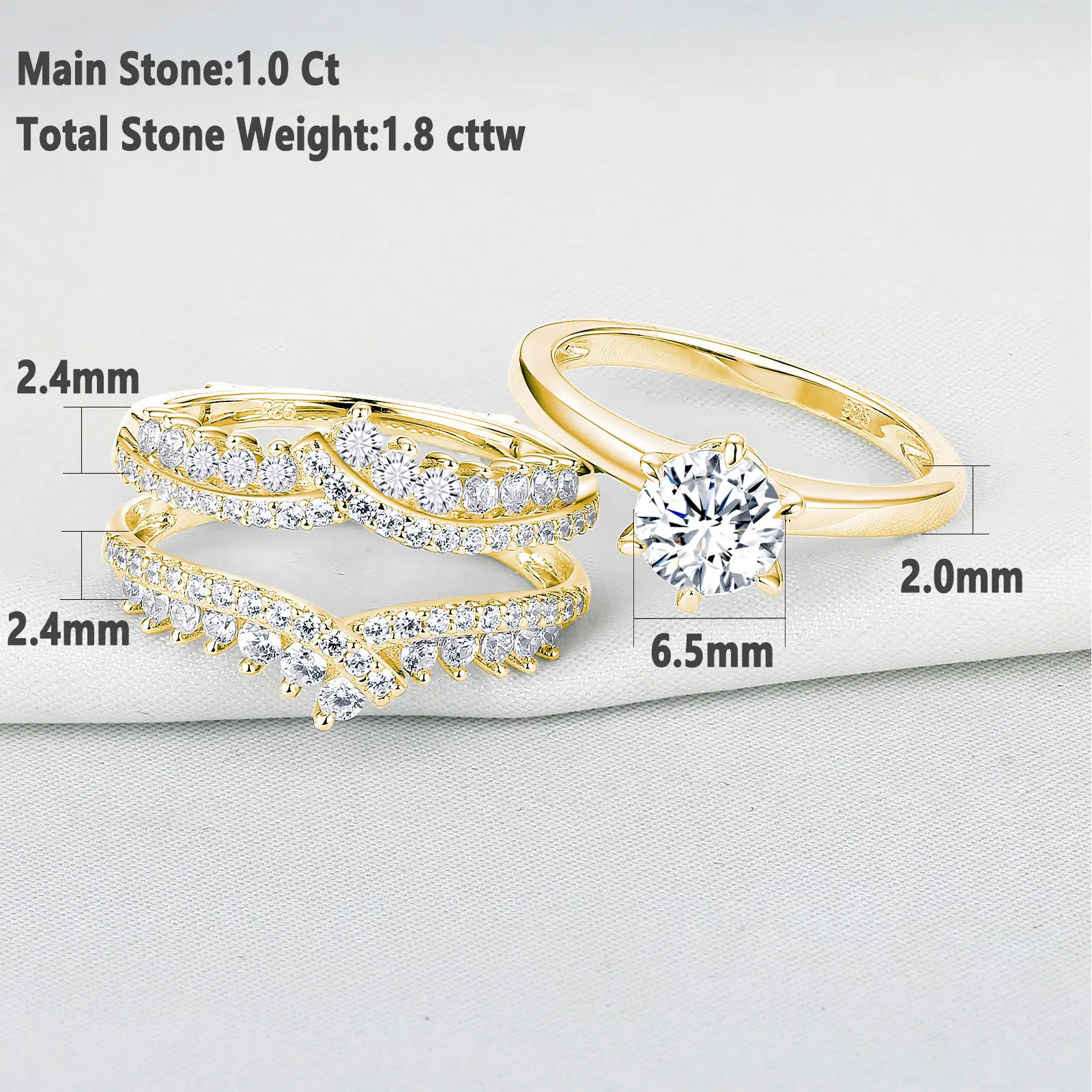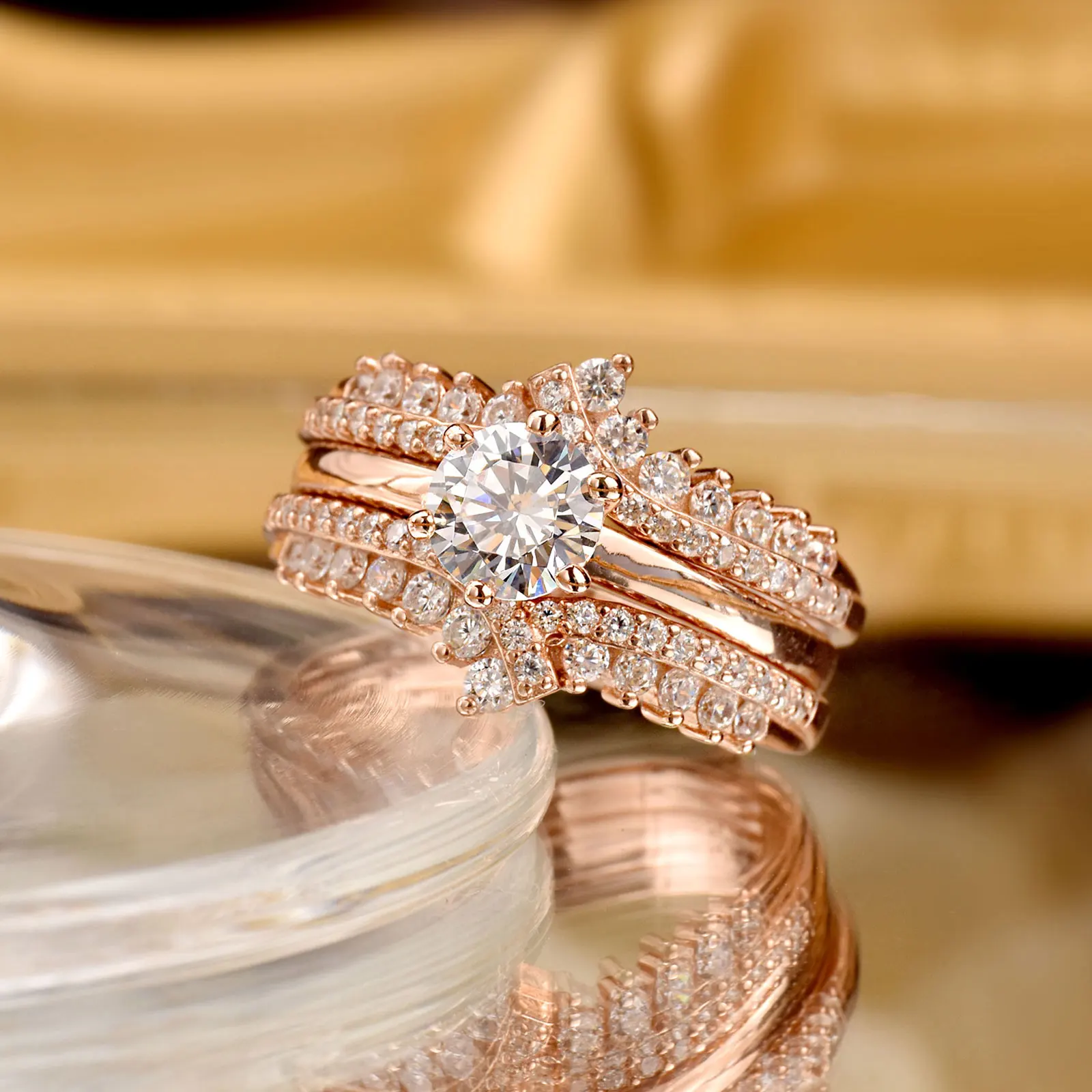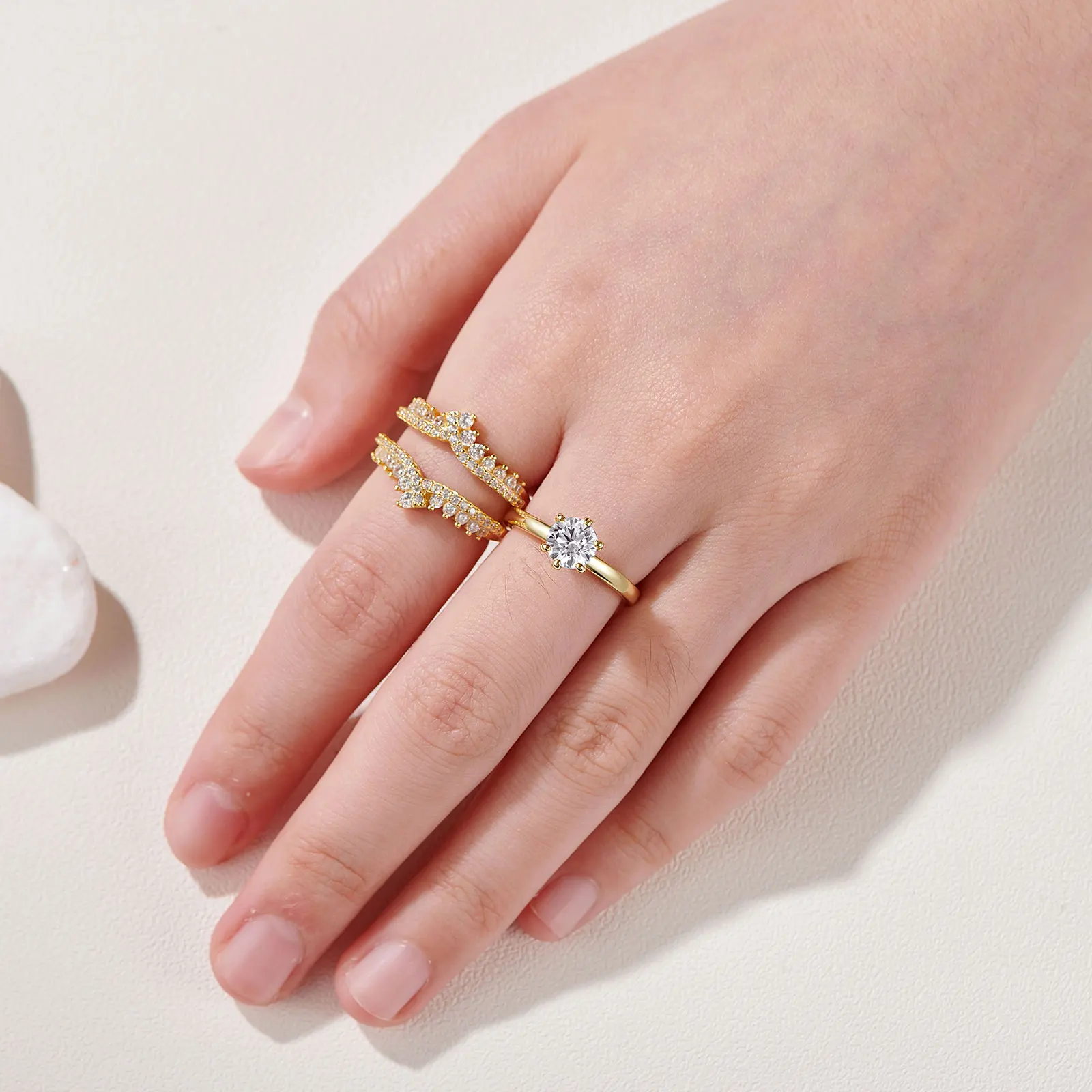 Fleepmart Yellow/Rose Gold 925 Sterling Silver Engagement Ring Set for Women Enhancer Wedding Band High Grade Zircon Jewelry