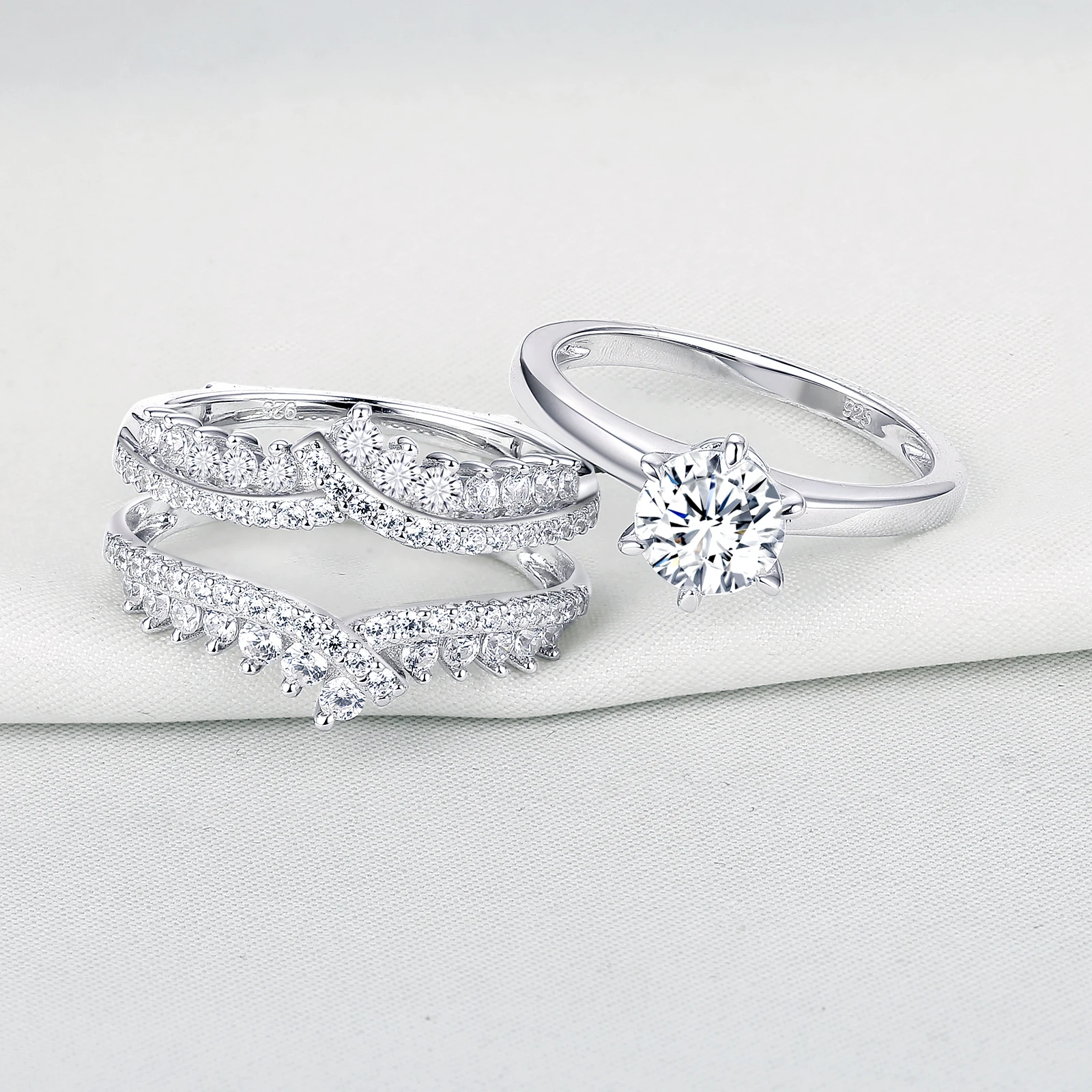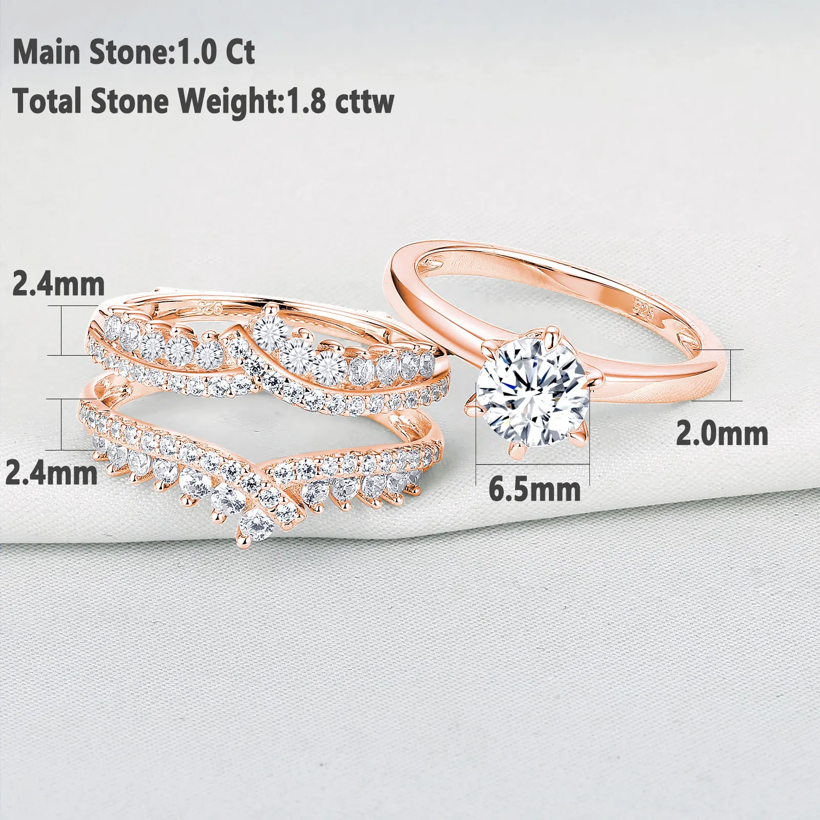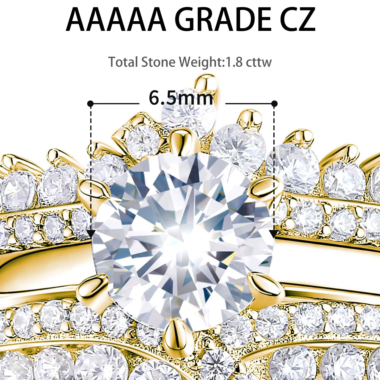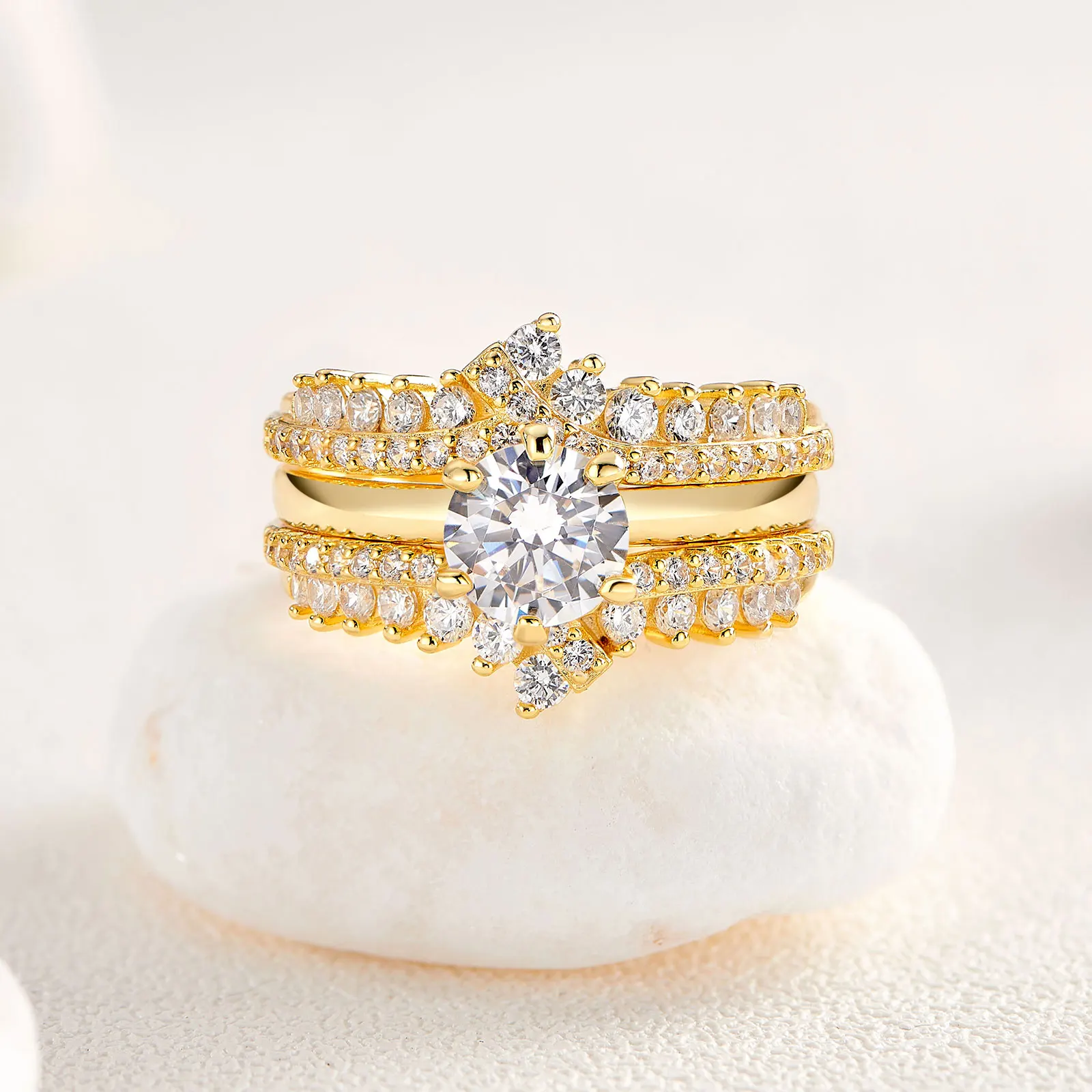 Fleepmart Yellow/Rose Gold 925 Sterling Silver Engagement Ring Set for Women Enhancer Wedding Band High Grade Zircon Jewelry