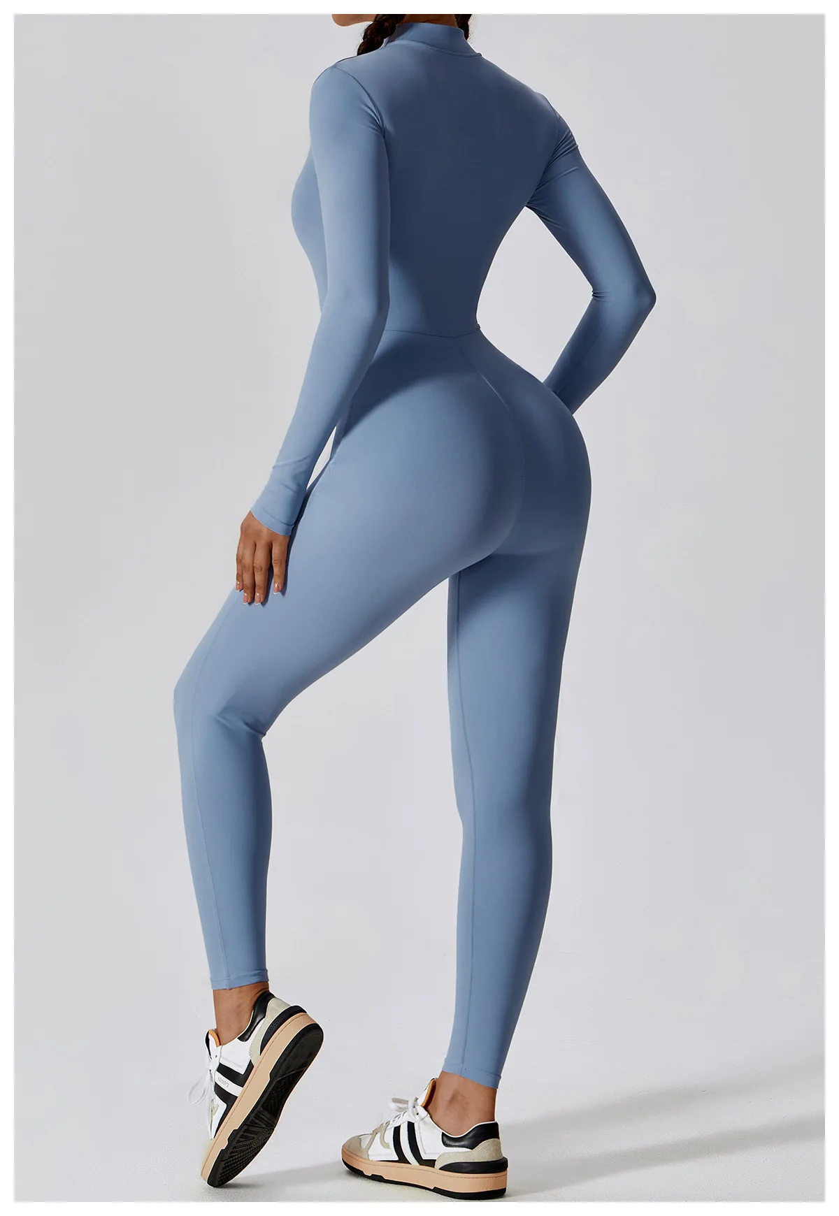 Fleepmart Yoga Boilersuit Long Sleeved Women’s Sportswear Gym Zipper Jumpsuits Workout High-intensity Fitness One-piece Skin-tight Garment
